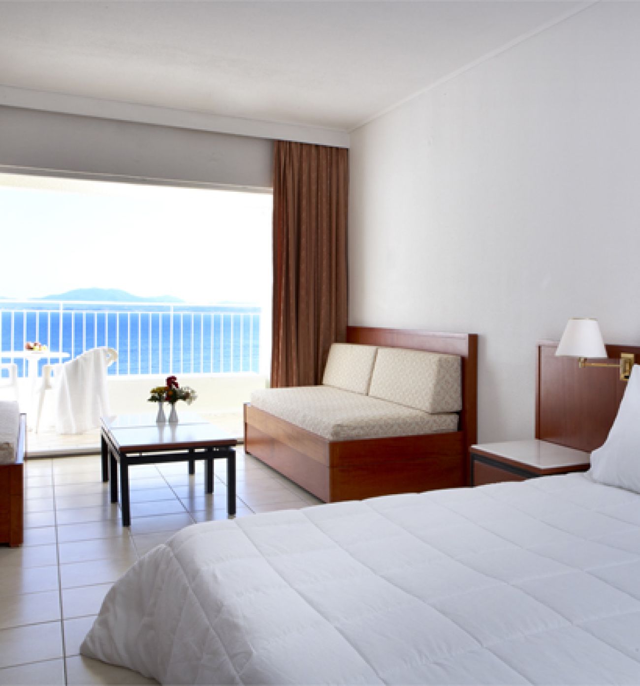 - 74 Семейни стаи с изглед море ( ~ 33 кв.м - макс 4 души) и ( ~ 41 кв.м - макс 5 човека ) ,