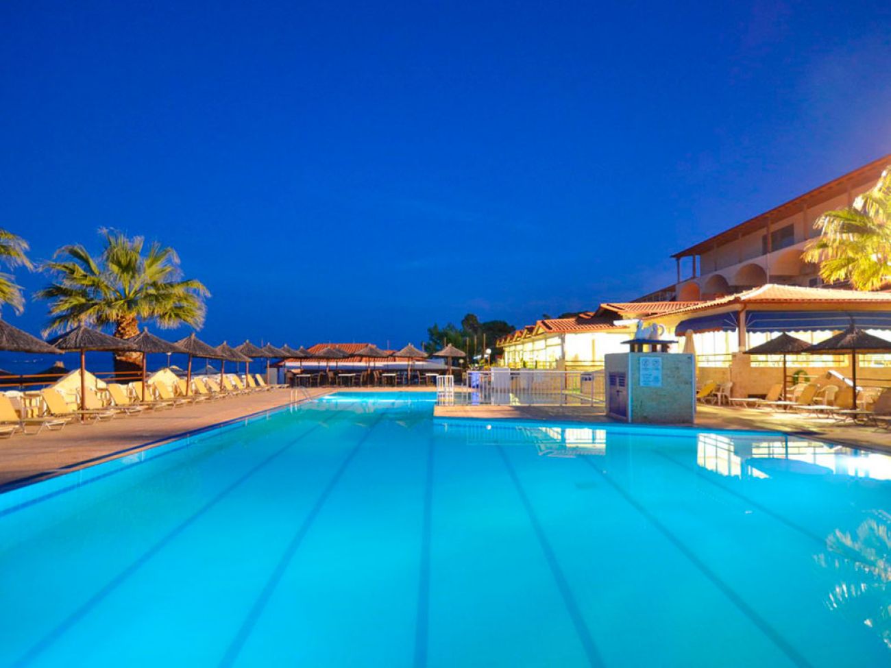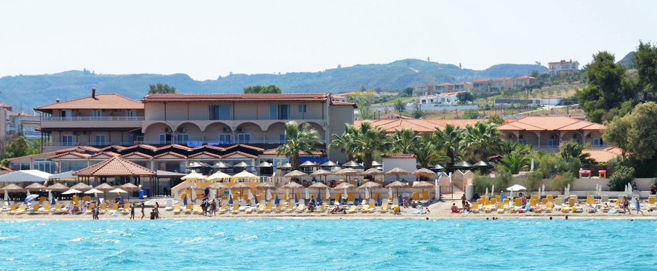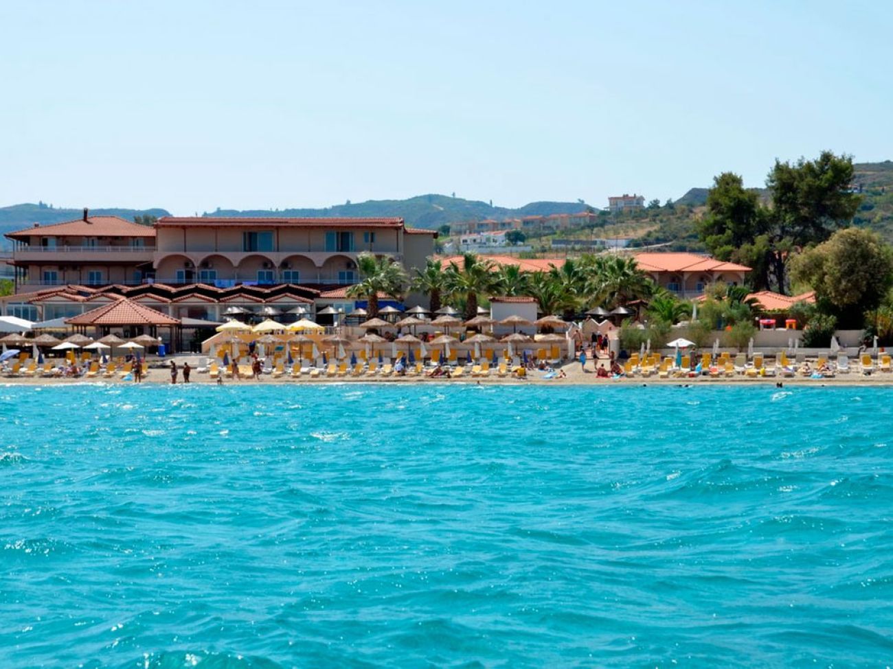 Хотелът е построен в атрактивен средиземноморски стил. Разположен е в близост до централния площад на популярното курортно селище Ханиоти, известно със своята добре развита туристическа инфраструктура.