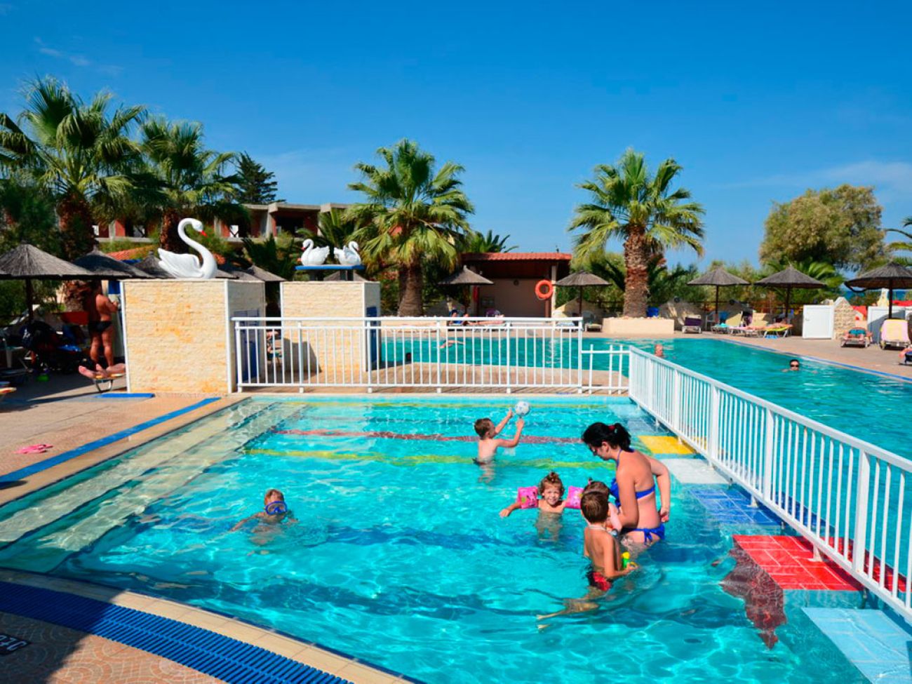 На разположение са басейн (с прясна вода), интернет кът и Wi-Fi (срещу заплащане), магазин, паркинг, сейф на рецепция - безплатно, телевизионна зала.Бар и снек-бар до басейна, барбекю, ресторант a la carte. Автобусна спирка на 10 мин. пеша, автобус от 7:30 до 19:40 на 1-2 часа до Солун.