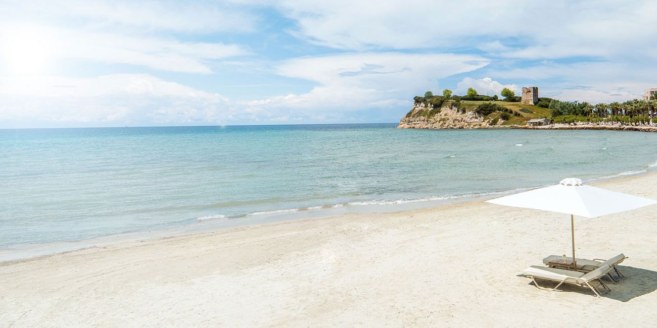 Пясъчни частни плажове. Всяка година, награждавани със Син Флаг от ЕС. Чадъри, шезлонги с комфортни матраци и плажни кърпи - безплатно. Павилионите за плажните кърпи, работят през целия ден. Има спасители на плажа и на басейна. Душове и съблекални. На плажа се предлага минерална вода, детски играчки, забравления и детегледачки. На разположение на гостите са електроавтомобили. Има пясъчен плаж на хотел SANI ASTERIAS SUITES и плаж Sea You на пристанището SANI MARINA (300 м). Също така и известния плаж Bousoulas до хотел SANI BEACH HOTEL & SPA (300 м).