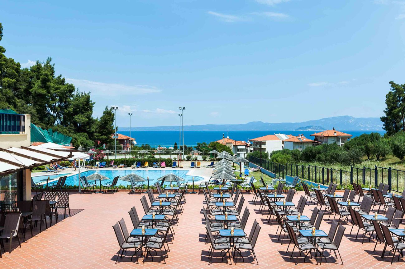 Сравнитено неголям хотел, разположен на хълм с прекрасен изглед към морето и селището Пефкохори.