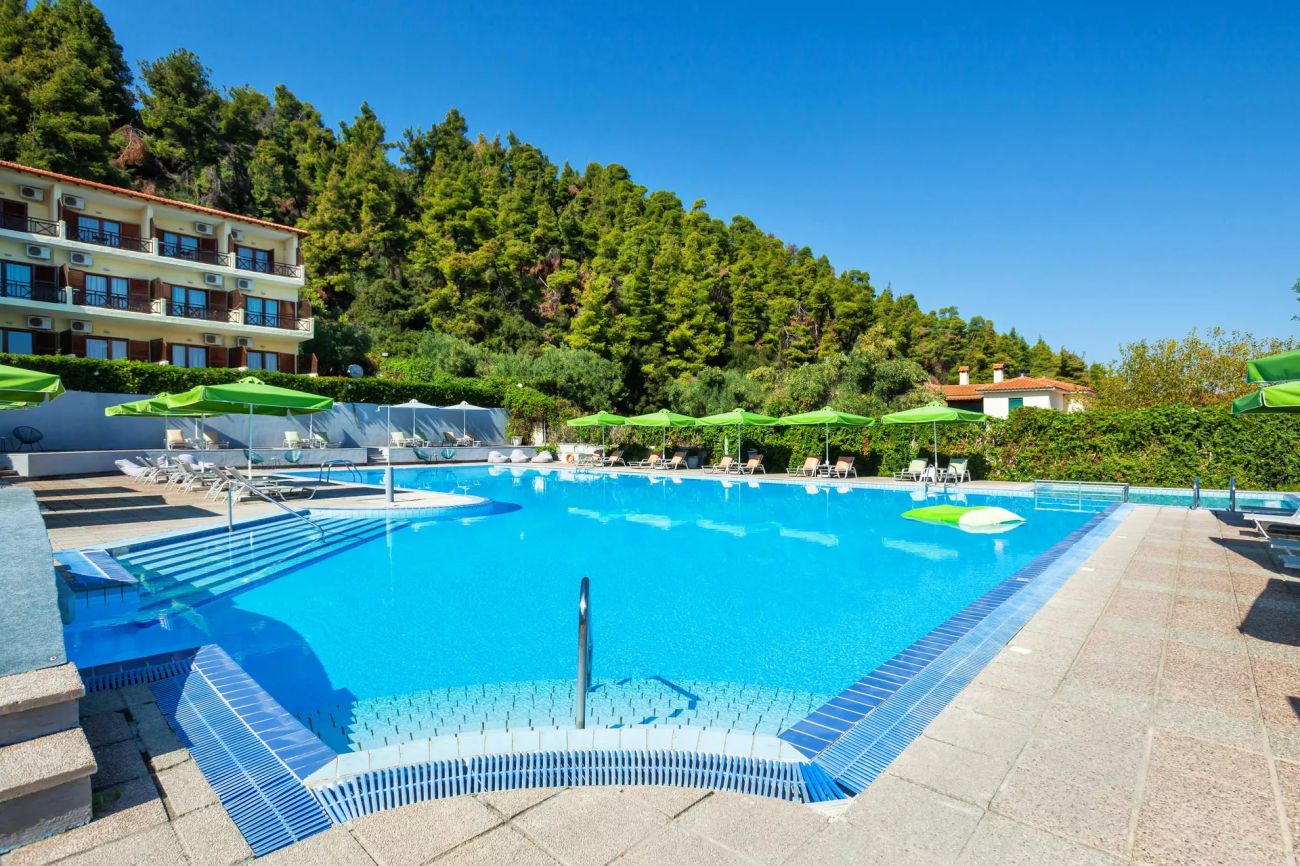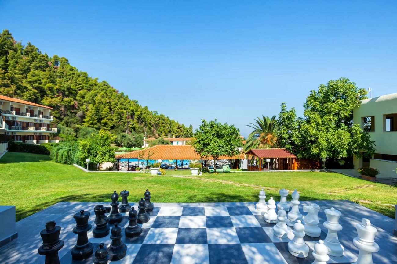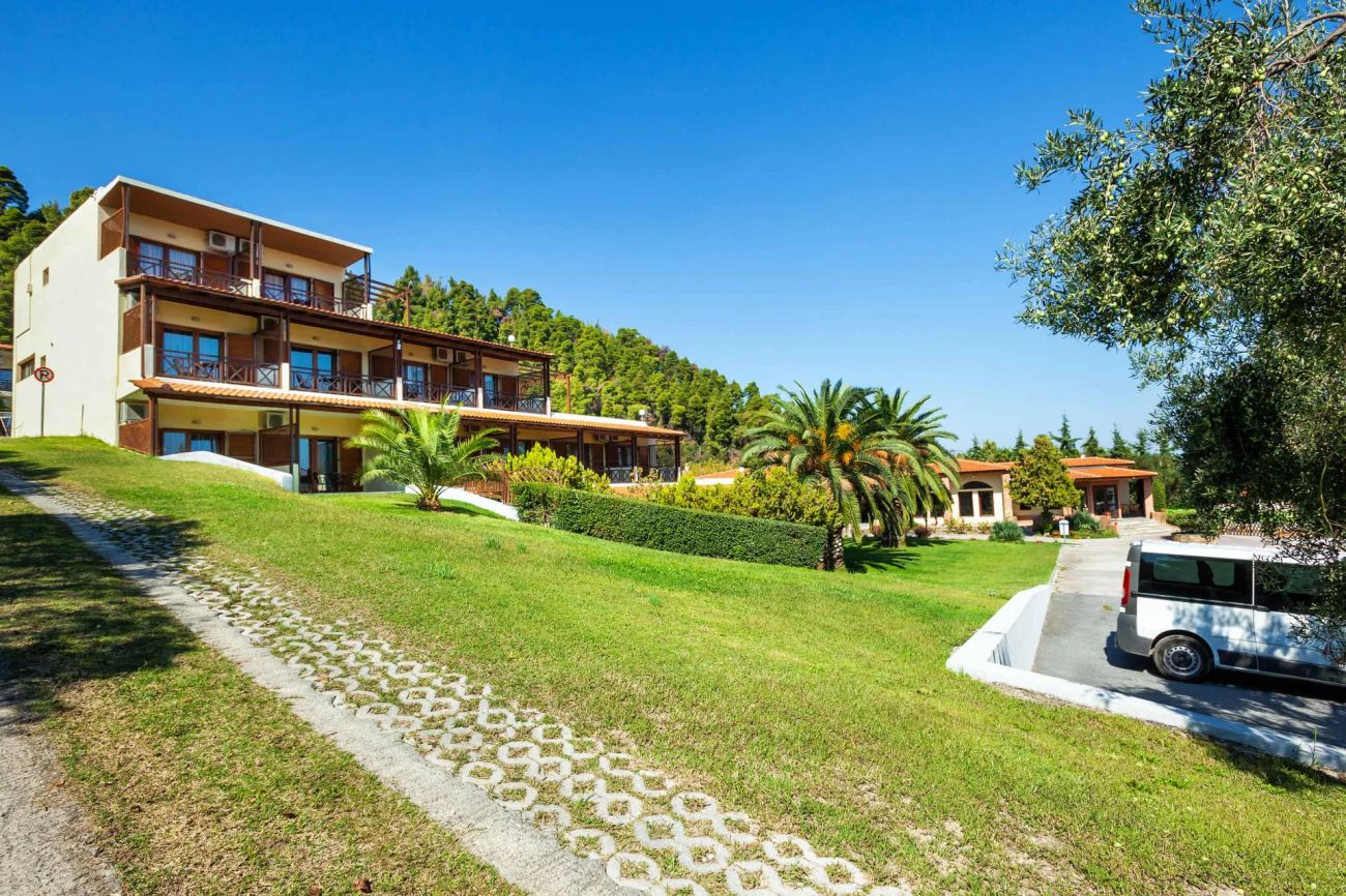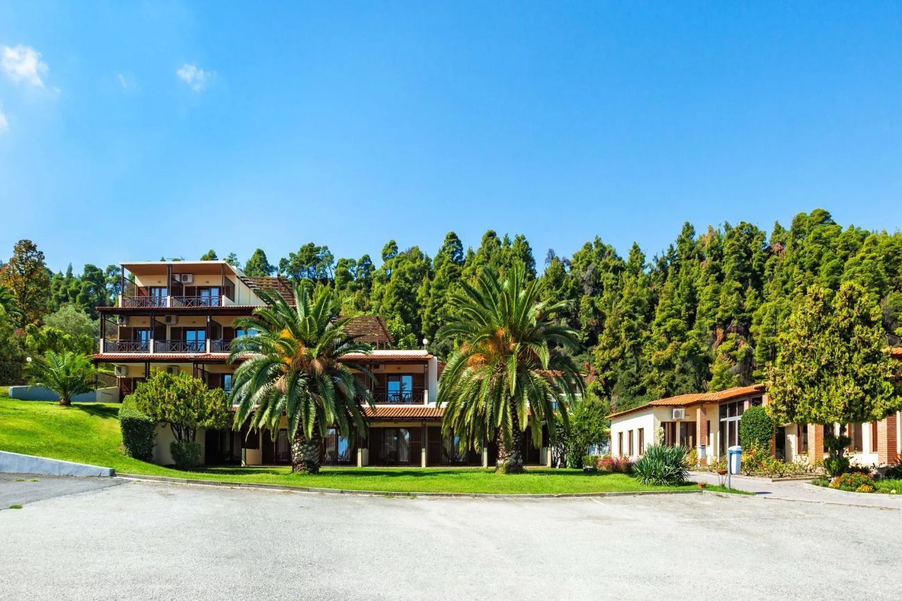 Хотелът се намира на полуостров Халкидики, на първия ръкав Касандра.На 2.5 километра от селището Калитея и 75 километра от летище Солун.