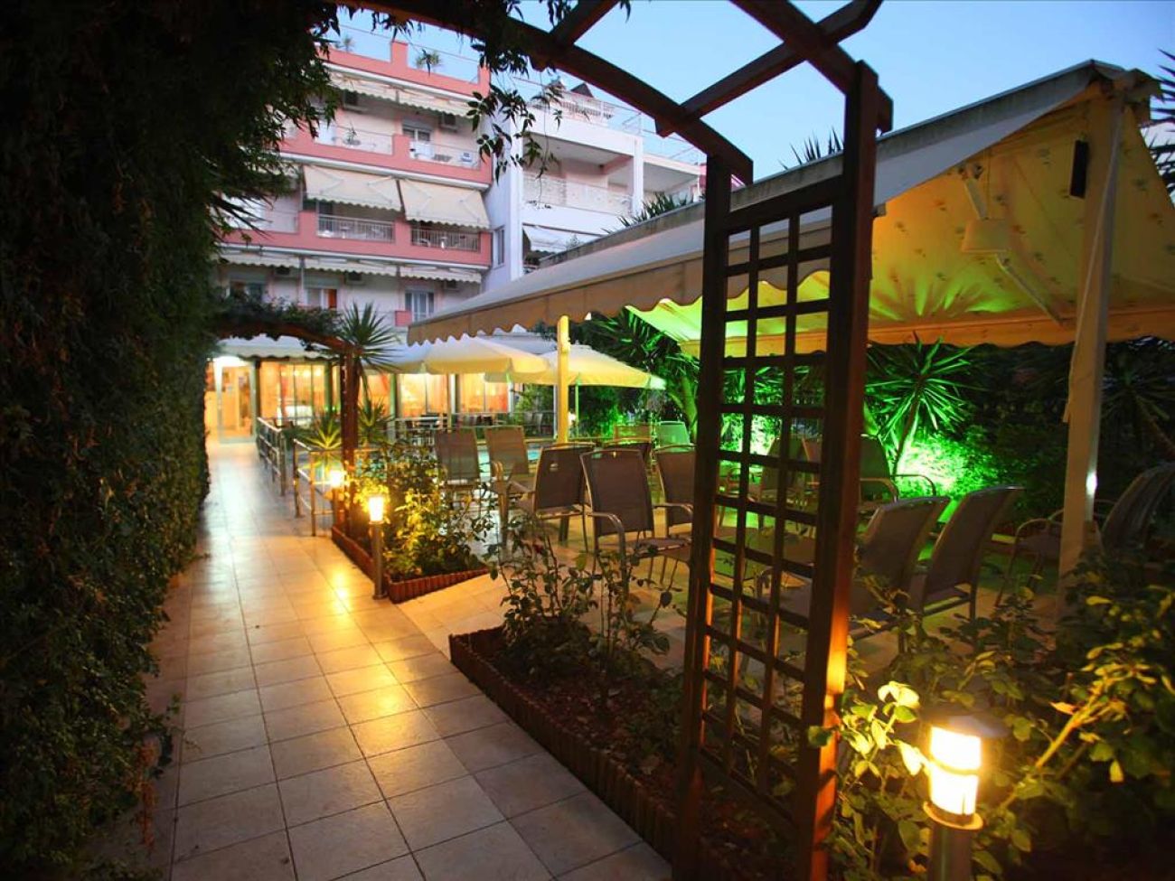 Хотелът се намира в Неа Каликратия, на 25 километра от летище " Македония " в Солун. През 2012 година са обновени ресторанта и фоайето.