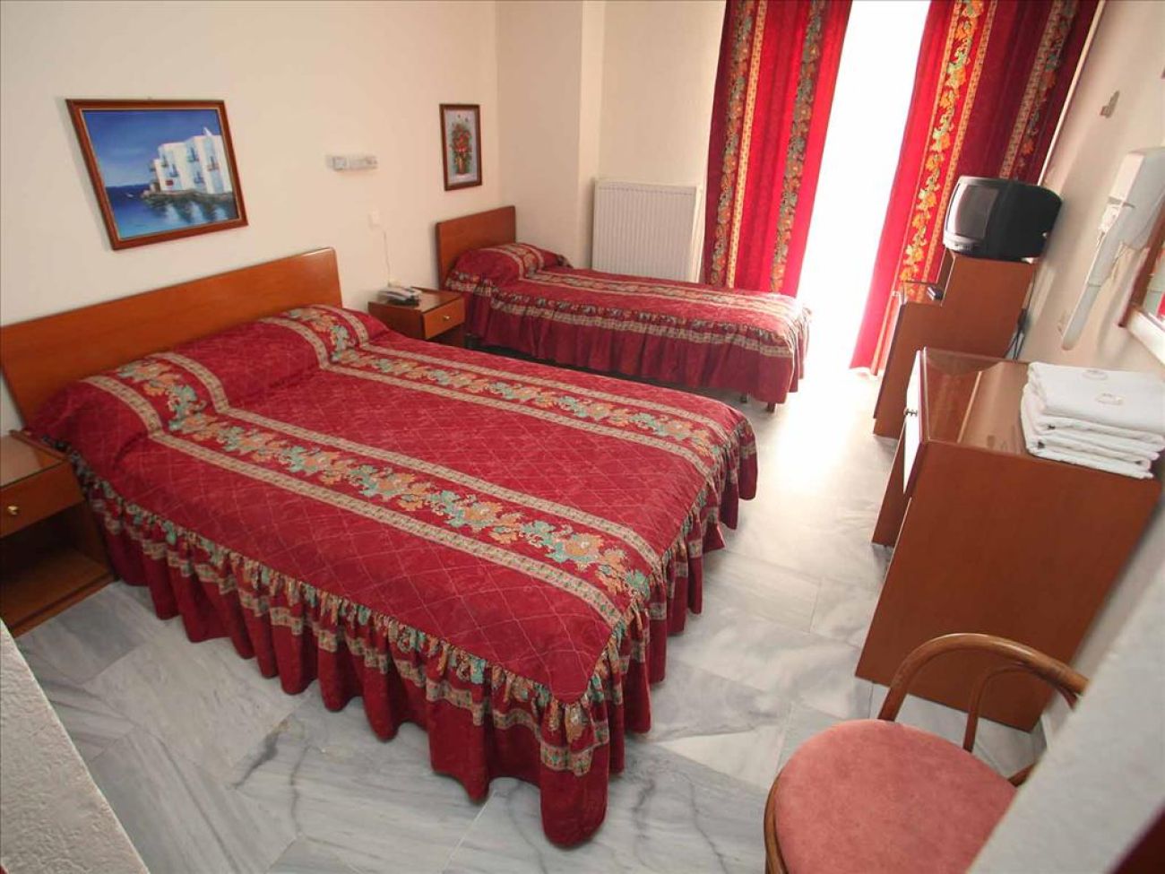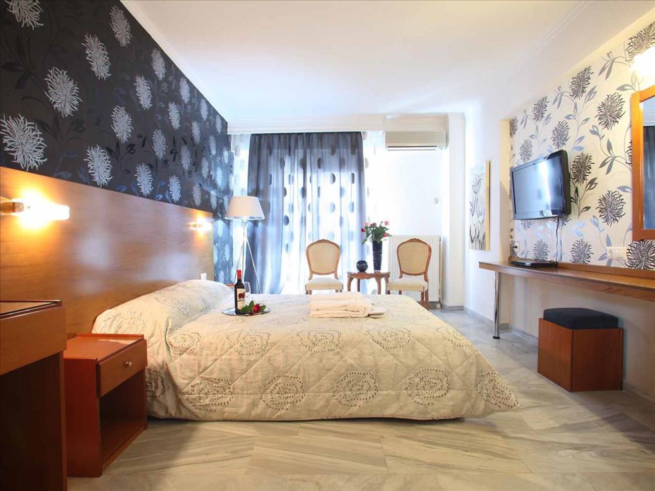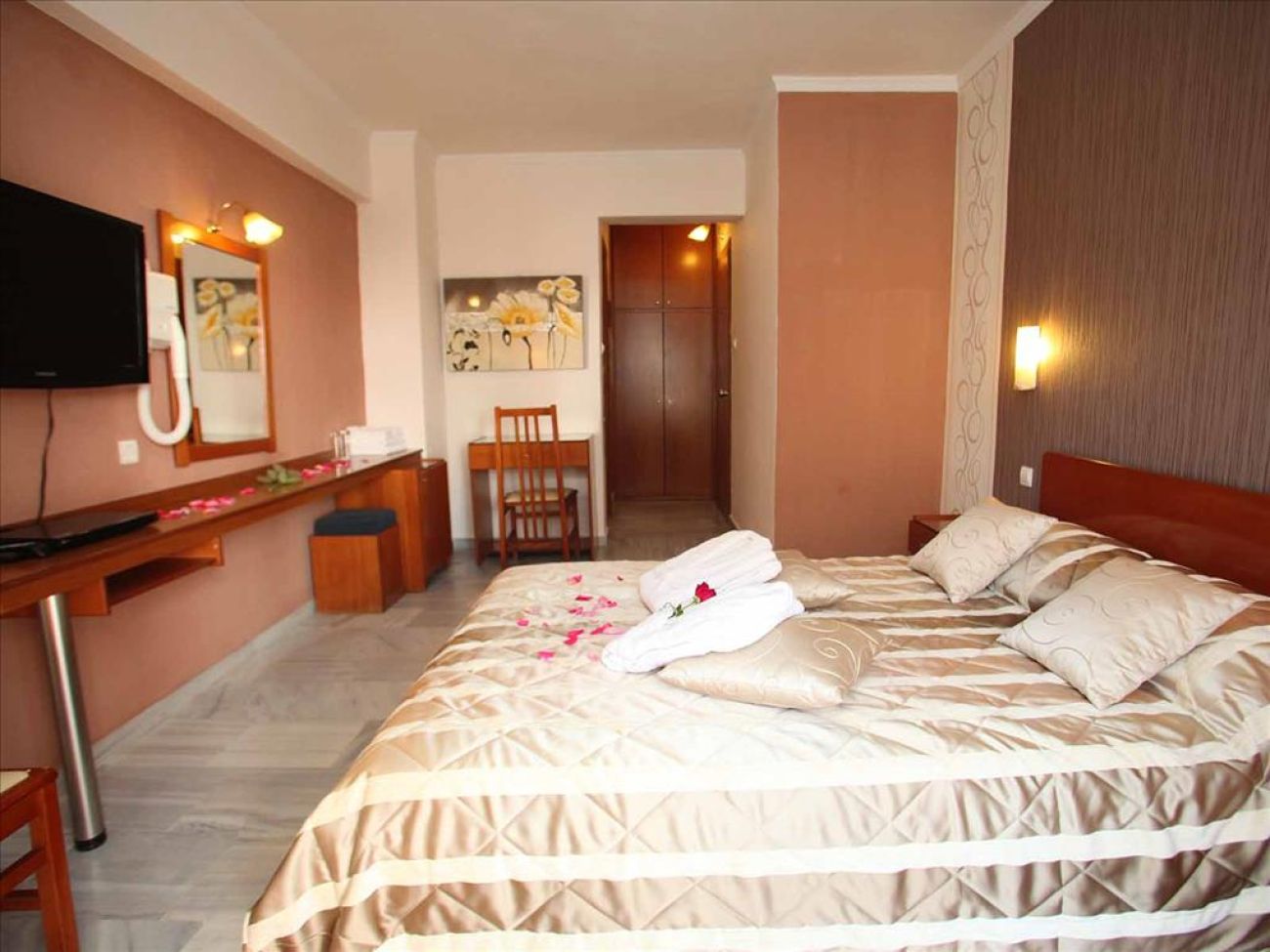 В стаите са на разположение: индивидуален климатик, централно отопление, сателитна телевизия, нови LED телевизори (22 "), безплатен достъп до Wi-Fi интернет, хладилник, телефон, баня (вана или душ), сешоар, сейф (безплатно), балкон, изглед към морето, града, градината или басейна.