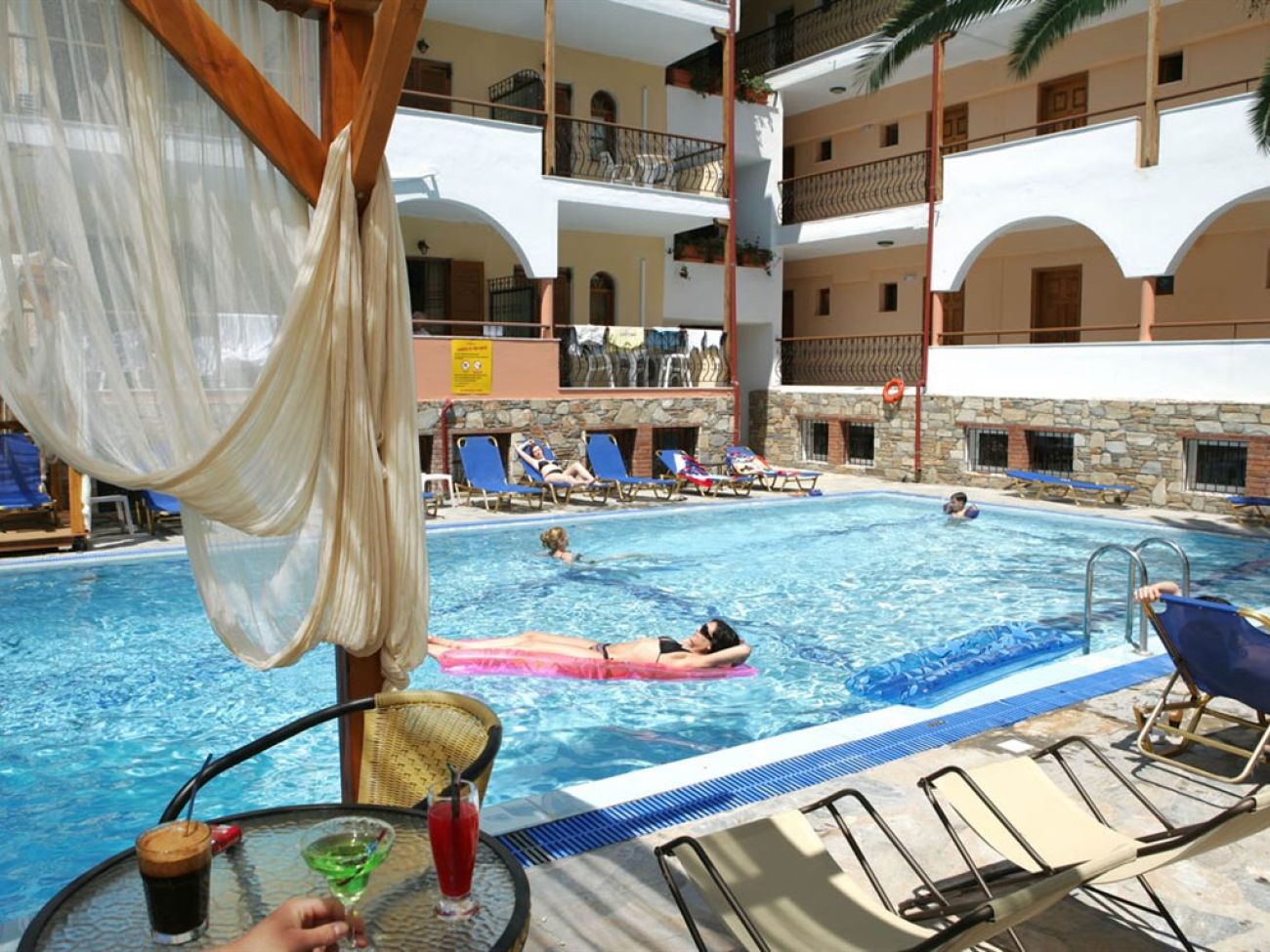 Малък хотел, разположен в центъра на популярното курортно селище Ханиоти.