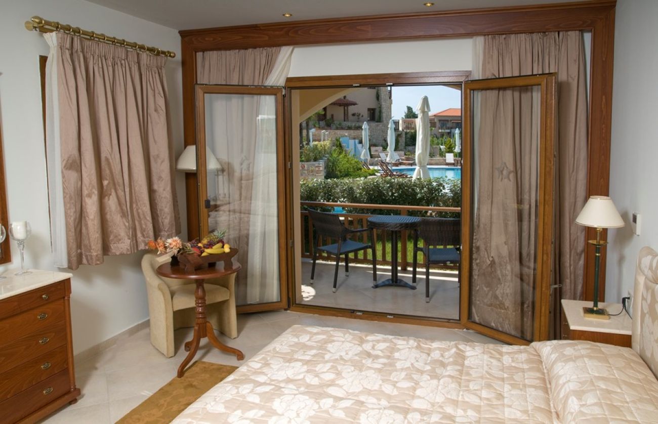 Double Superior Pool View Разположени са в бунгалата (над пътя). Състоят се от спалня и всекидневна, баня и отделна тоалетна, балкон. Изглед към басейна. Възможно настаняване: до 4-ма души.