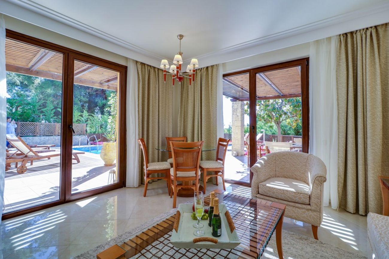 Suite Superior with Private Pool Разположени са в бунгалата. Частен басейн (прясна вода), 2 стаи - спалня и всекидневна (в един от суитите има допълнителна малка детска стая с едно легло), 2 бани (в едната - джакузи, в другата - душ), тераса, изглед към морето. Възможно настаняване: до 4-ма души.
