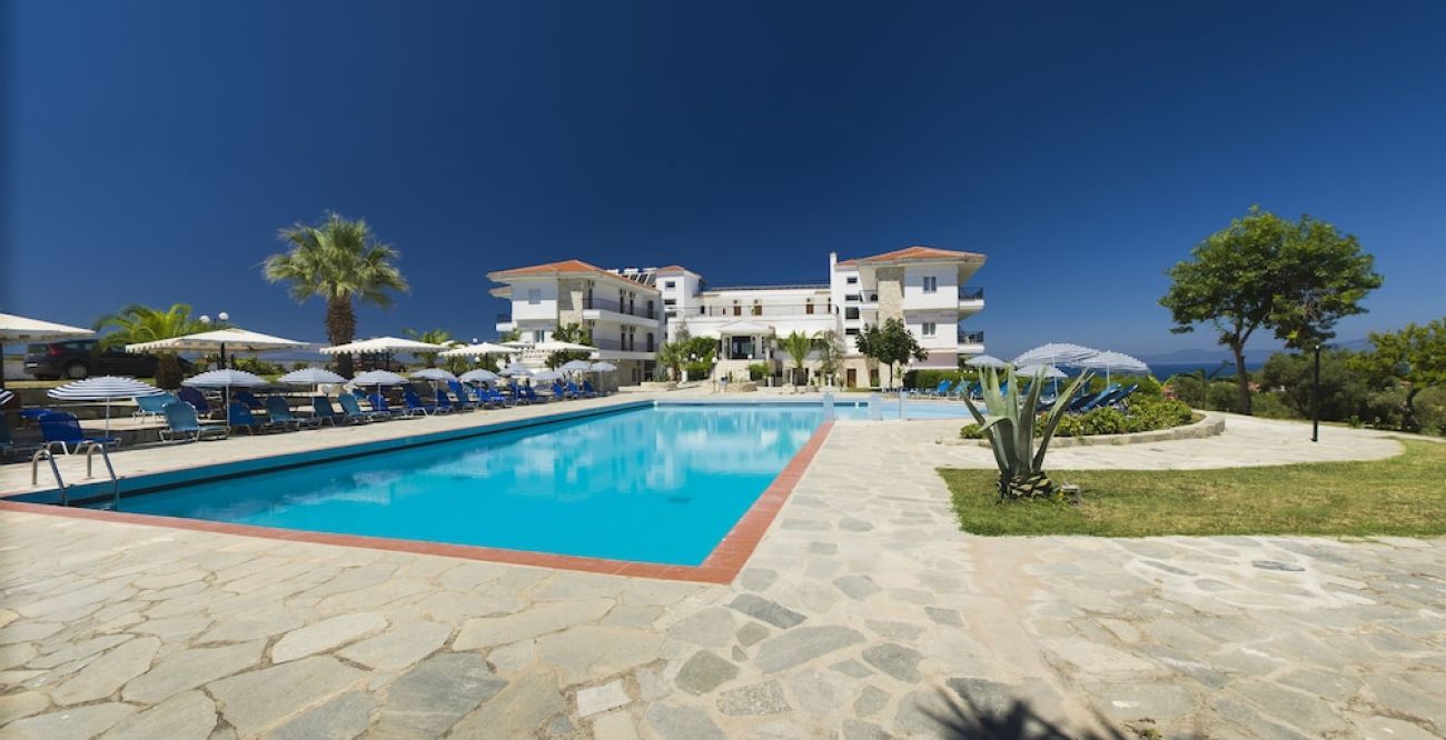 Хотелът се намира в полуостров Касандра, курортно селище Ханиоти, на 5 километра от курортни селищя Полихроно и Пефкохори, на 90 километра от летище Македония, в град Солун. Хотелът е реновиран 2012-2013 година.