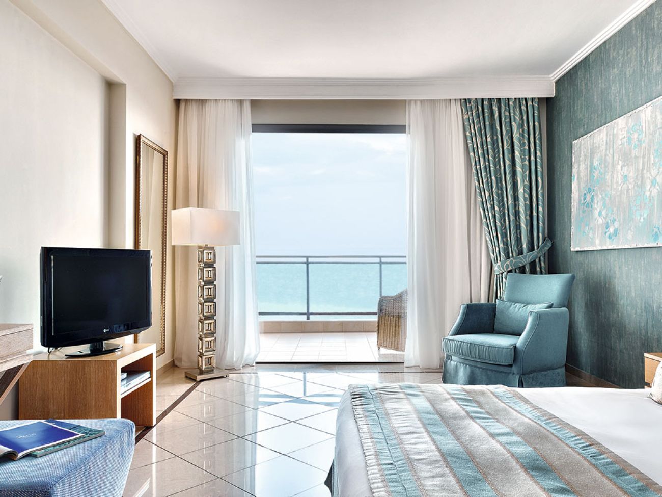 Удобствата в стаите включват : високи френски прозорци от пода до тавана, които предлагат зашеметяваща гледка към Егейско море и планинските върхове на Олимп, тераса / балкон, баня с вана, огледало за грим, луксозни халати, чехли (по заявка), сешоар, тоалетни принадлежности от френската компания Anne Semonin; двойно легло с кралски размери, ултракомфортни матраци Dream Bed, луксозно спално бельо, олекотени завивки, допълнителни възглавници; плазмен телевизор, сателитна телевизия (руски и музикални канали, CD / DVD-плейър, безплатен Wi-Fi интернет, телефон, климатик с индивидуално дистанционно управление, електронен сейф, мини-бар с алкохолни и безалкохолни напитки, чай и кафе, кафе машина Nespresso.