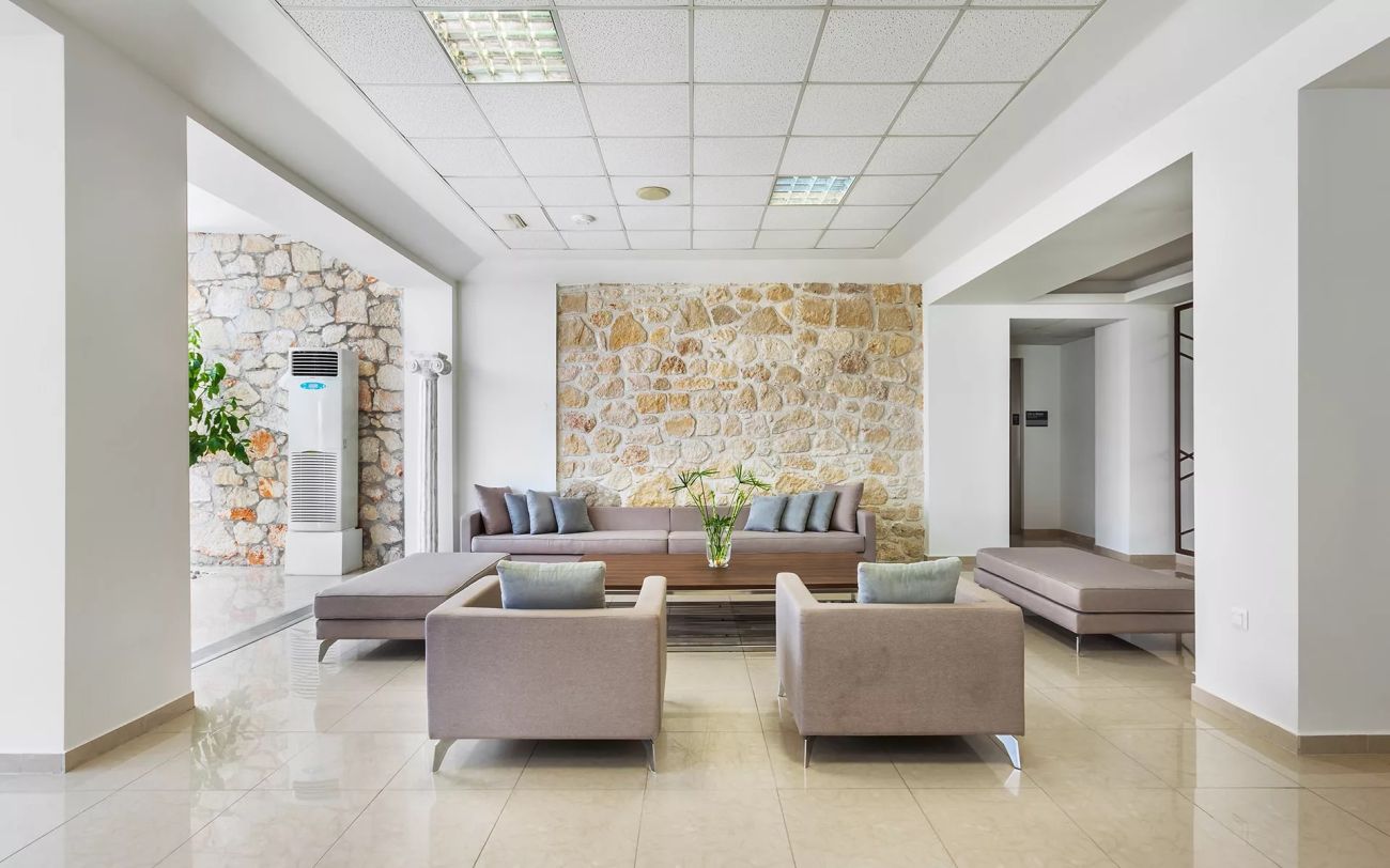 Junior Suite 2 стаи - малка всекидневна с кухненски бокс и диван, отделна спалня с двойно легло, 28’ телевизор, DVD плейър, камина,баня (вана/душ, в някои стаи е на разположение джакузи), мини хладилник, балкон с изглед към морето.