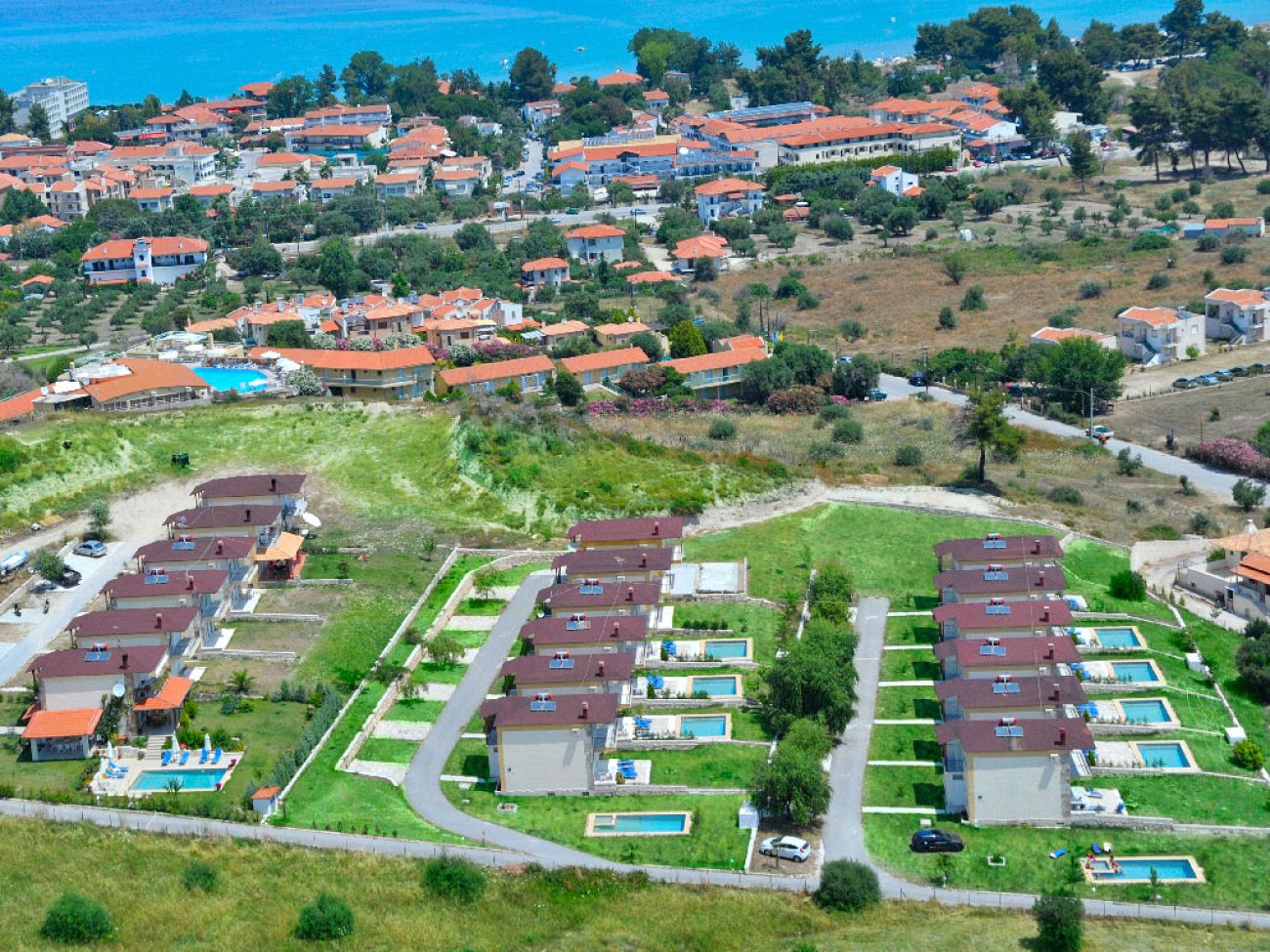 Малък, модерен комплекс за спокойна семейна почивка. В близост до живописното курортно селище Ханиоти, в което са на разположение разнообразни магазини, традиционни таверни и барове.