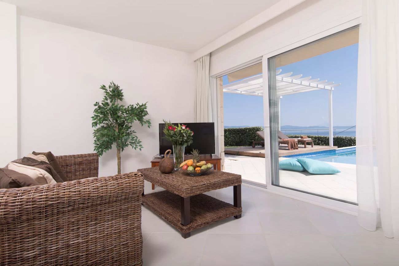 Във вилите Villa Ermioni PP, Villa Ioli РР, Villa Alkyon PP & Villa Iliachtis PP, Villa Alkistis PP (всё, кроме камина): безплатен Wi-Fi, 32" LED SMART TV, сателитни канали, Hi-Fi система за iPod-iPhone, камина, оборудвана кухня, трапезария, климатик, телефон с директна връзка, сейф, халати, плажни кърпи, баня, разкошни принадлежности за баня, ютия и дъска за гладене, пералня.