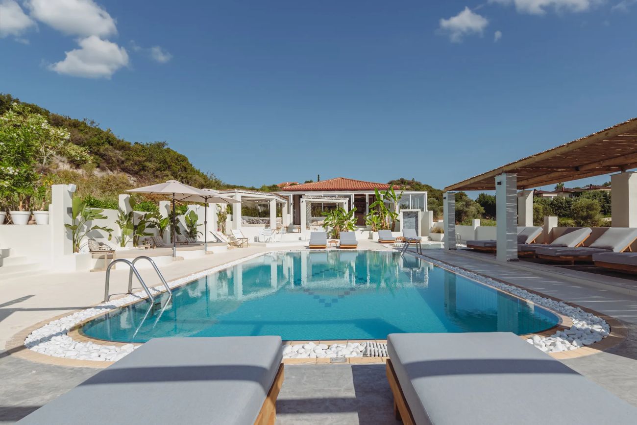 Ampelia Hotel Kassandra се намира на 85 километра от центъра на Солун и на 90 километра от международното летище на Солун. Село Пефкохори е на 3 километра. Хотел Ampelia Kassandra разполага с басейн със снек-бар и се намира на 800 метра от пясъчния плаж Ханиоти на полуостров Халкидики.