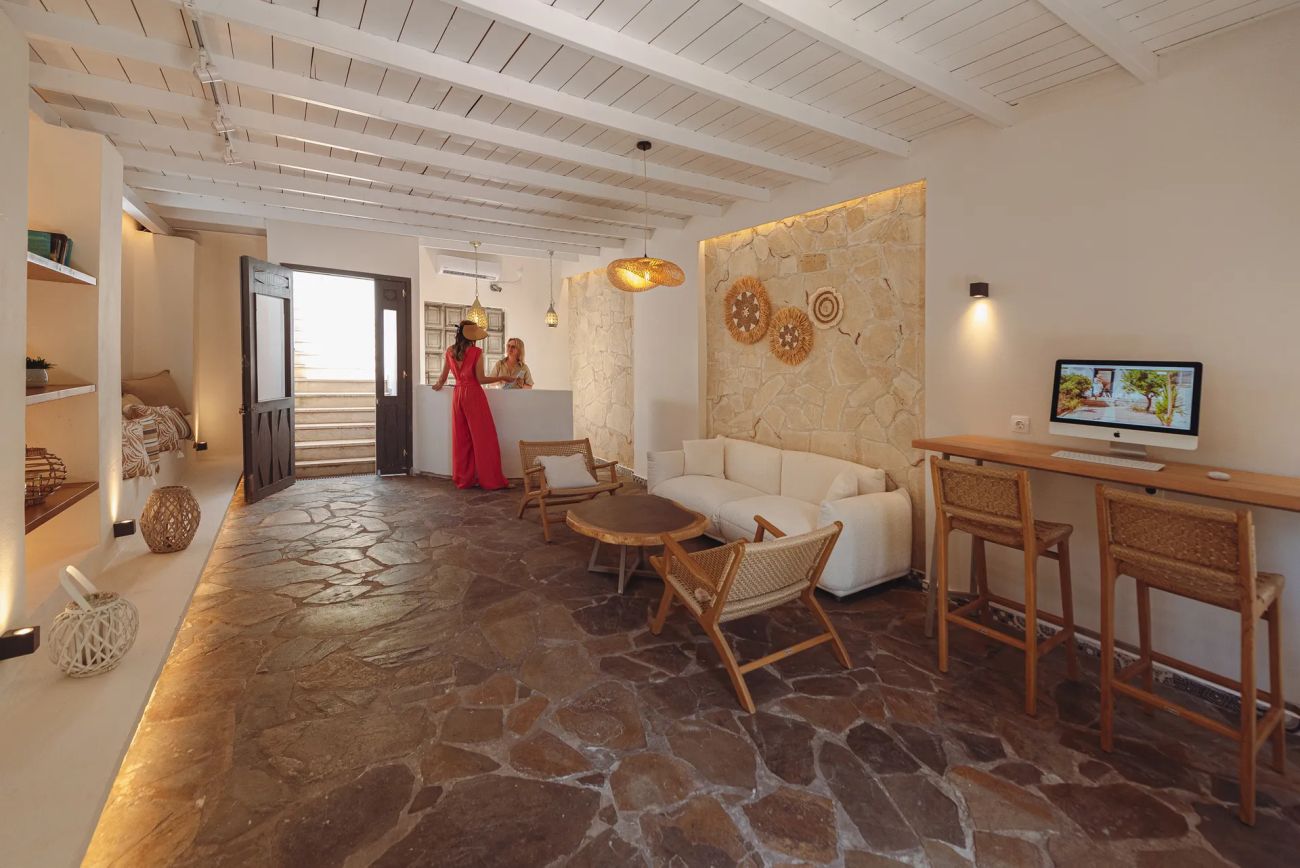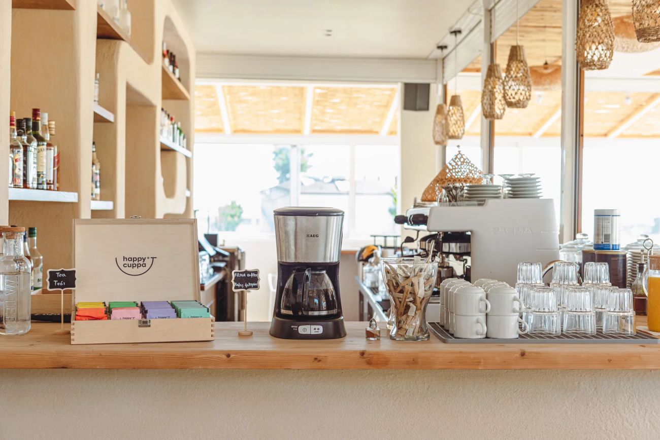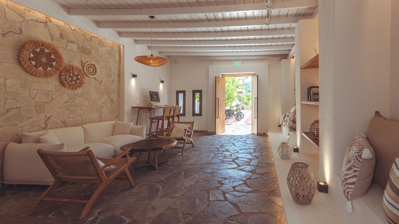 Климатизираните студиа и апартаменти на Ampelia са с изглед към Егейско море или градината. Всяко помещение за настаняване разполага с теракотен под, кът за сядане и кухненски бокс с хладилник. Има също телевизор и сейф.