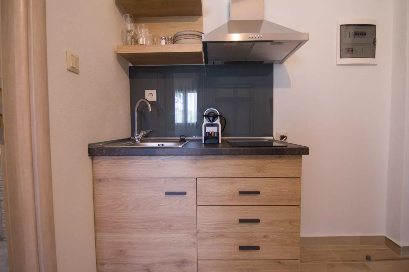 Всички апартаменти имат балкони и/или тераси, където можете да се отпуснете и да се насладите на красивата гледка към градината, гората, морето и басейна. Насладете се на гръцкото море, релаксирайте под слънцето и създайте незабравими спомени със семейството или приятелите си.