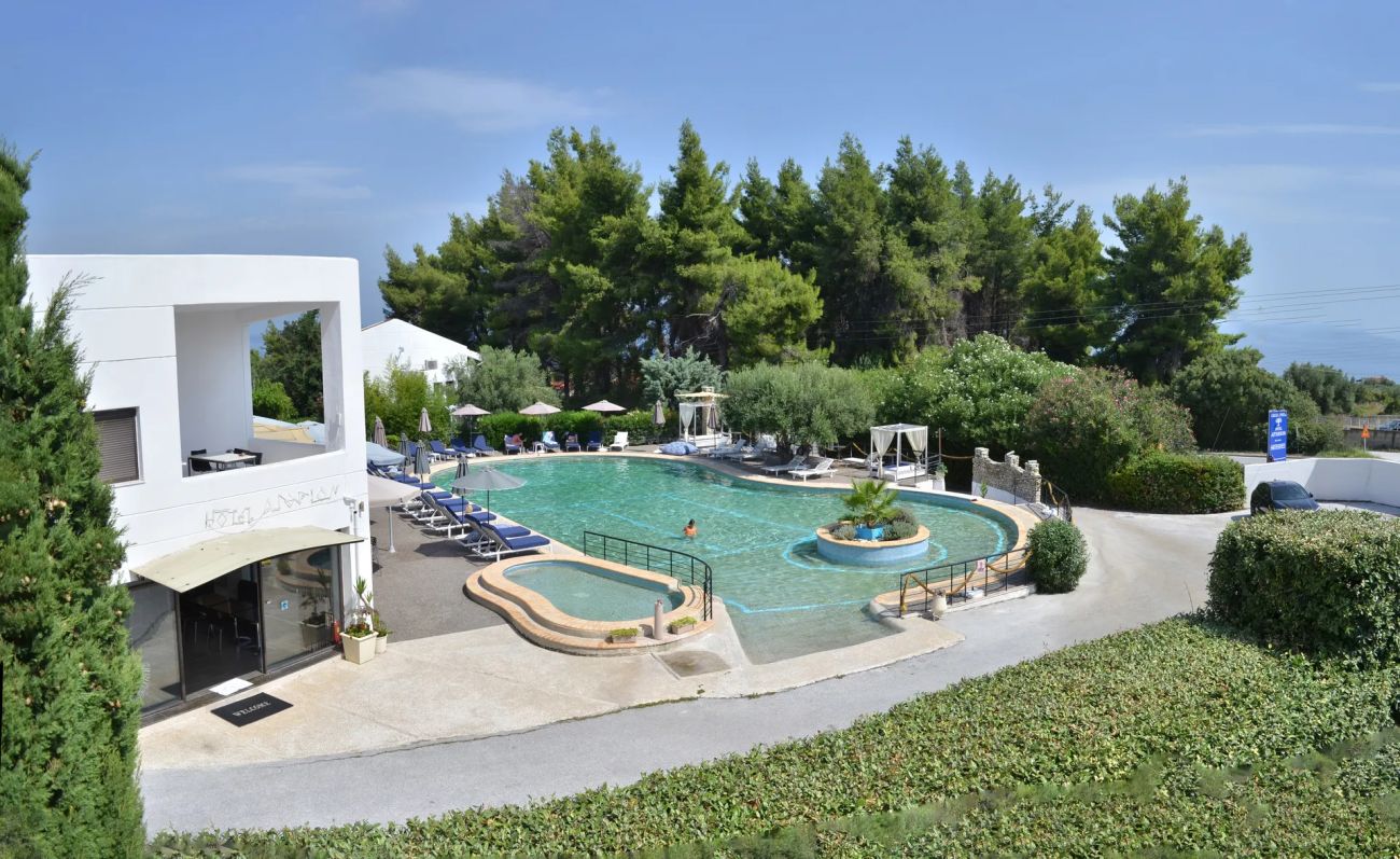 Разполага с басейн, ресторант и просторни стаи с балкон или тераса с изглед към залива Касандра. Закуската се поднася в зоната за хранене до басейна. Напитки и кафе се сервират в бара до басейна.Терасата има дървена платформа, безплатни шезлонги и чадъри. За по-малките гости има детски басейн. В общите части на хотела има безплатен достъп до Wi-Fi. Персоналът може да организира автомобили под наем, а на място има безплатен частен паркинг.