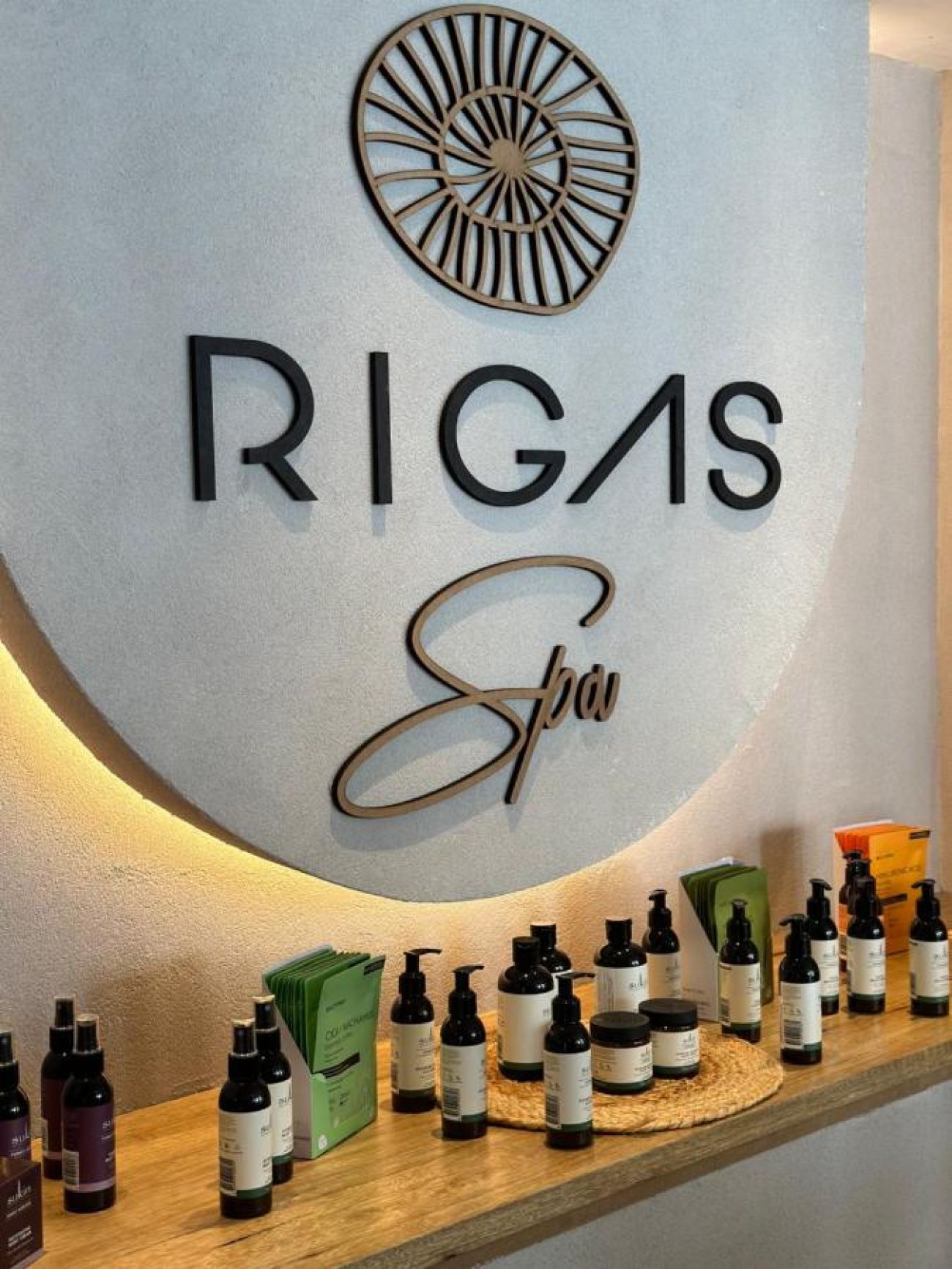 Всяка сутрин в хотел Rigas се поднася закуска на шведска маса. В бара край басейна със стилни комфортни столове и дивани се сервират напитки, а в ресторанта на място се предлагат морски дарове. Останалите съоръжения включват рецепция с телевизионен салон.
