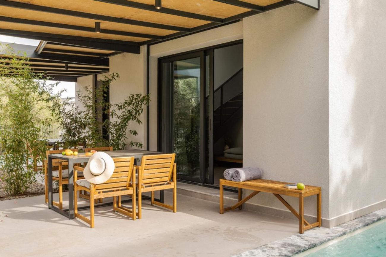 Всяко помещение за настаняване разполага с климатик, самостоятелна баня и добре оборудвана кухня с хладилник. Помещенията за настаняване са оборудвани с кафемашина, телевизор с плосък екран, сейф и безплатен WiFi, а някои стаи разполагат и с тераса.