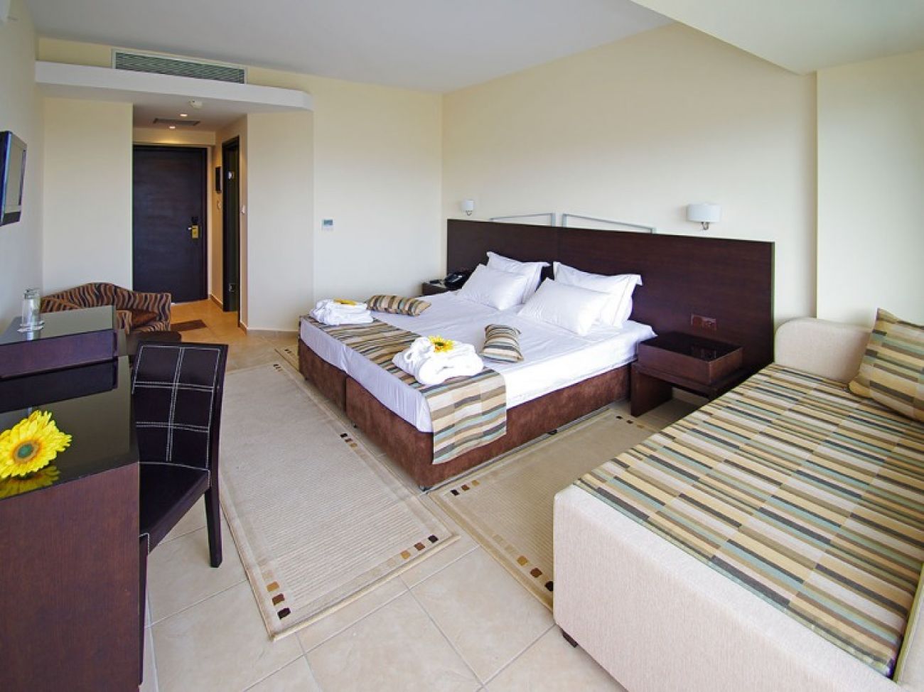 Луксозен хотел, разположен на брега на морето. Частен пясъчен плаж, избор от комфортни стаи, ресторант, таверна, барове, аквапарк с басейни с различна дълбочина, Spa център, интернет, разнообразни видове спорт и развлечения.