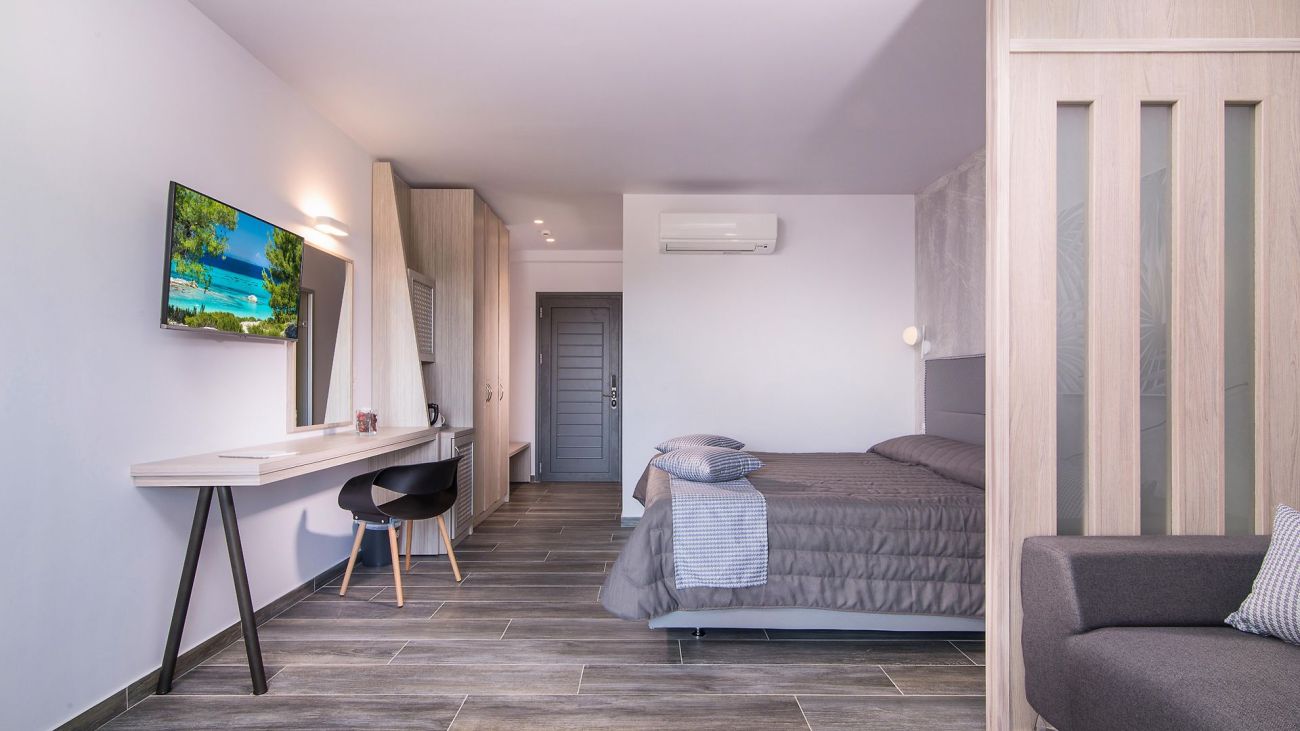Джуниор суити Супириър - съчетават спалня и всекидневна, 2 телевизора (един от които с LCD екран), комплект луксозни козметични принадлежности. Изглед към морето. Възможно настаняване: до 4-ма души. Допълнително - двоен разтегателен диван.