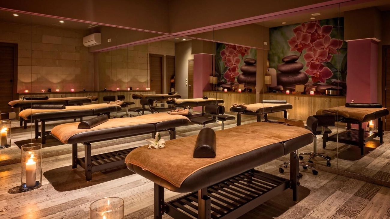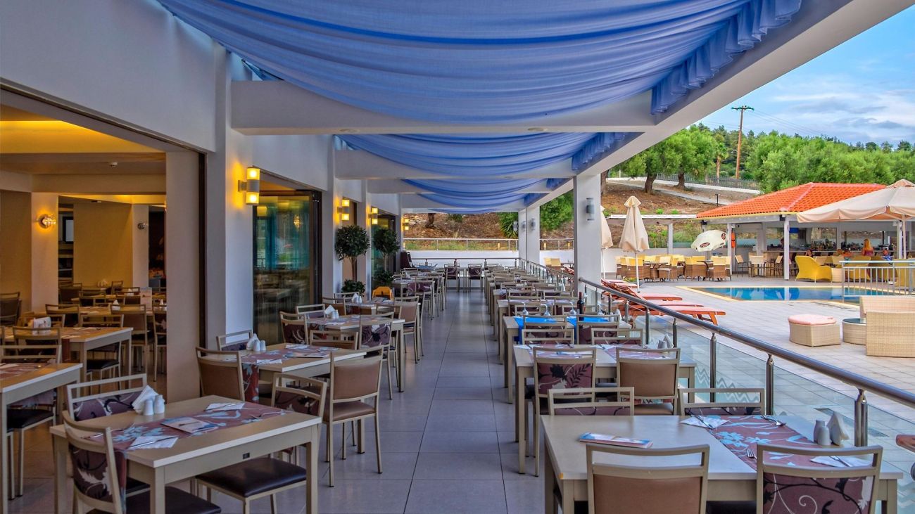 На разположение са ресторант с тераса с изглед към морето и басейна, лоби бар, 2 бара на басейна, традиционна таверна с гръцки специалитети и рибни дарове, TV зала, детска площадка, билярд, футбол на маса, тенис на маса, велосипеди под наем, конна езда, гмуркане и голф (на 8 км.), рум сървис, открит басейн, детски басейн, WI-Fi интернет в общите части на хотела, градинa, паркинг, водни спортове. Нов СПА-център ! (открит през 2013 г.) Козметичен салон ( фризъор, маникюр, педикюр), масаж, джакузи, сауна, различни процедури за лице и тяло. Фитнес зала - безплатно.