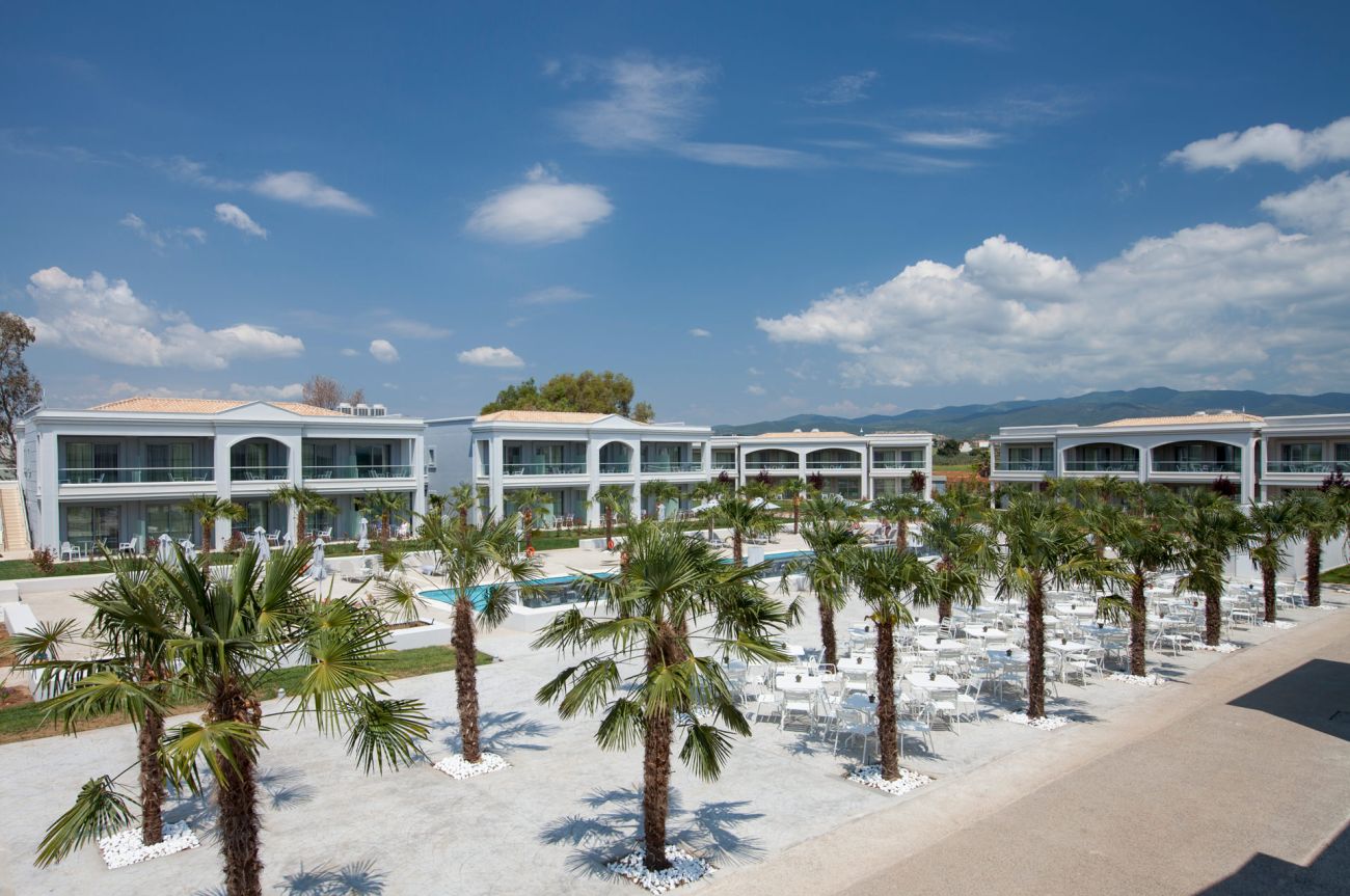 Полуостров Ситония, на 500 м от центъра на селище Каливес, на 5 км от селище Геракини, на 85 км. от летище "Македония" в Солун. Нов хотел, построен през 2014-2015 г. Официално отваря през месец май 2015 година.