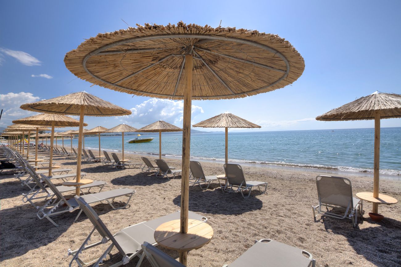 Пясъчен плаж на 50м. Плажни кърпи-безплатно.Чадъри-безплатно.