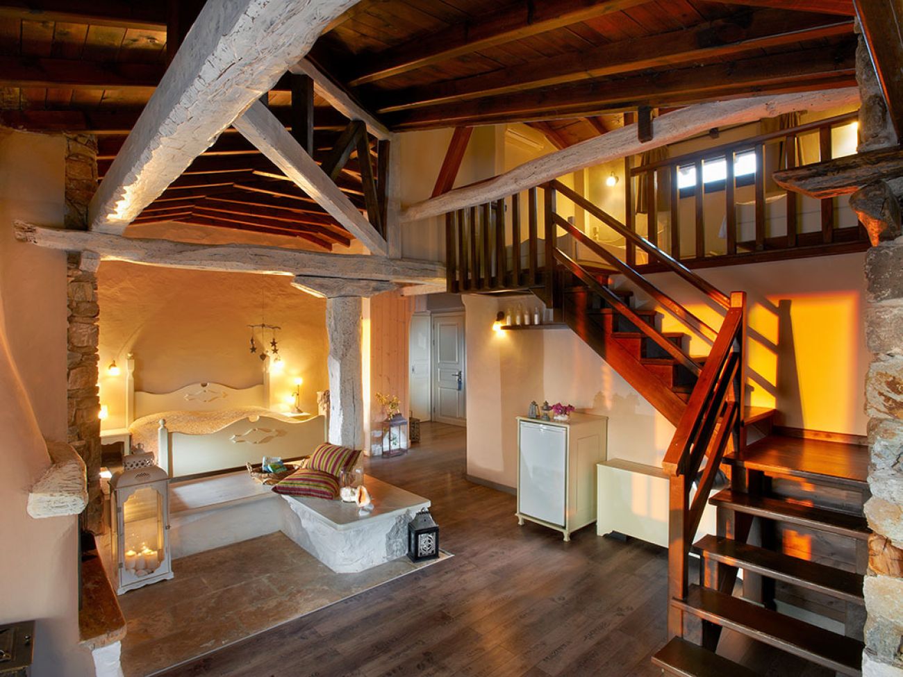 Мезонети (~ 50 кв. м.) Нови стаи, разположени около общ басейн, предназначен единствено за гости, настанени в мезонетите (един от мезонетите е с частен басейн). Изглед към басейна, тераса с мини градина. На две нива, отворена всекидневна с камина и спални на първия и втория етаж. Гостите могат да поръчат закуска в стаята.