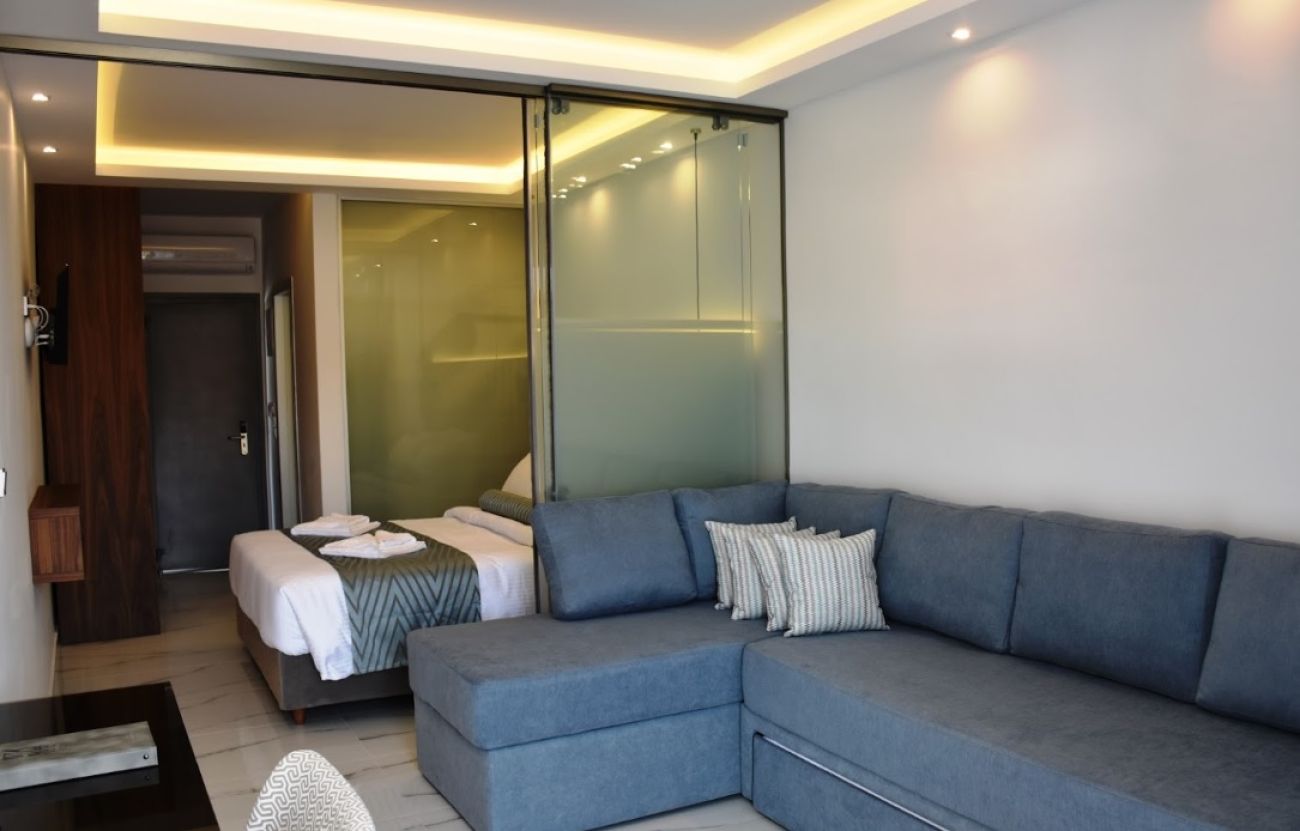 общо 12 стаи: Junior Suites (~ 32 кв.м), климатик, сателитна телевизия, телевизор с плосък екран, телефон, сейф (безплатно), хладилник, душ, сешоар, вана, електрическа кана, чехли, безплатен Wi-Fi в интернет, комарници, балкон / тераса. Двойно легло, зад плъзгаща се врата - 2 разтегателни дивана.
