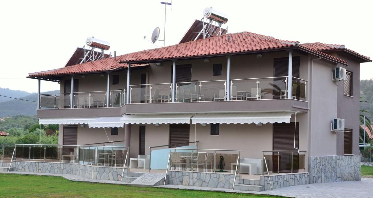 Климатизираните апартаменти включват баня с душ, напълно оборудвана кухня, балкон с изглед към планината Атон, плоскоекранен телевизор с кабелни канали и сешоар.