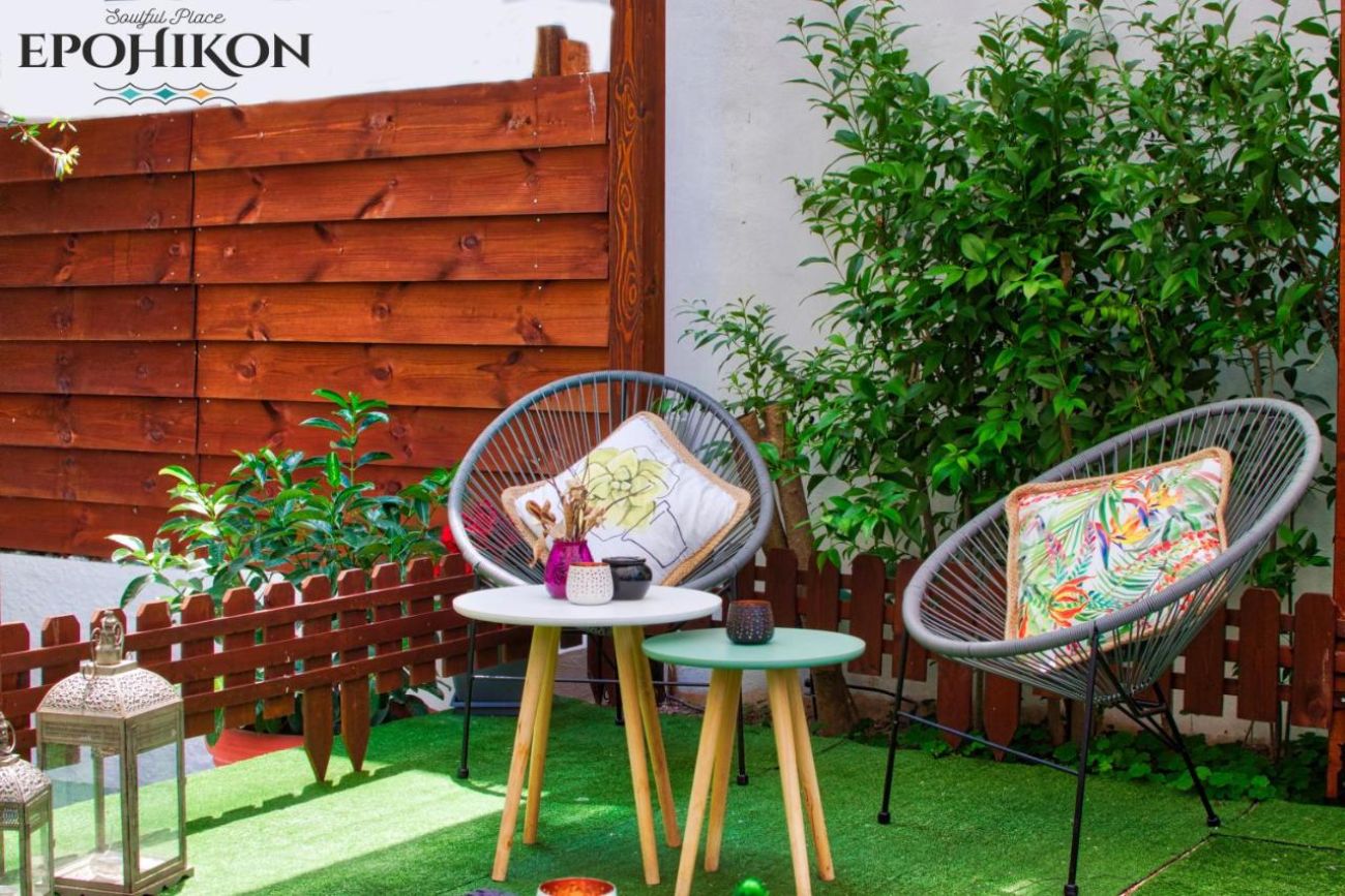 Освен обзаведен балкон, всички климатизирани студиа в Epohikon Studios разполагат с кухненски бокс с котлони и хладилник. Стандартните удобства включват телевизор с плосък екран и баня с душ.