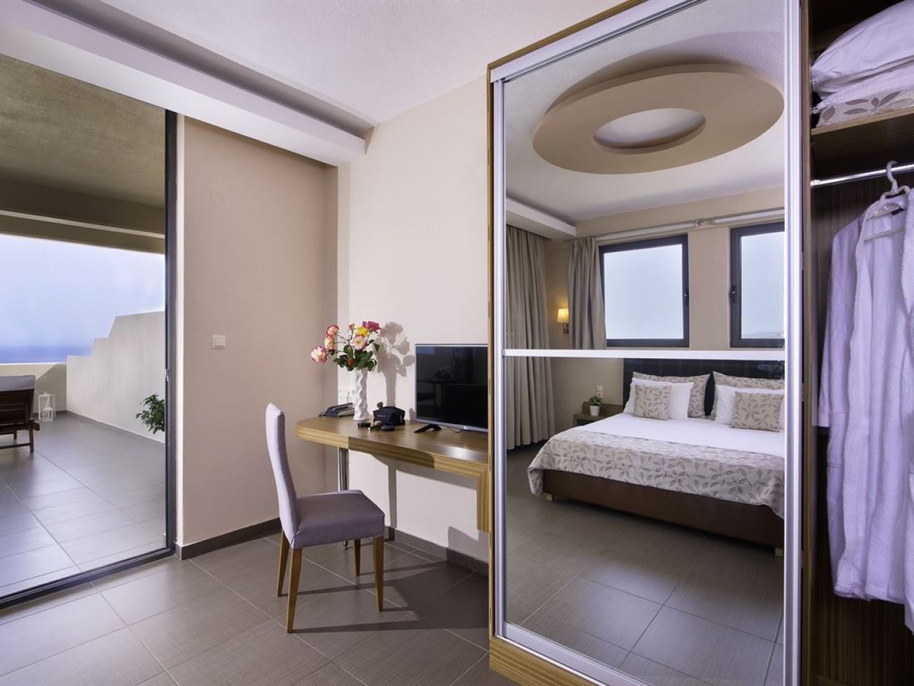 В стаите са на разположение: климатик, сателитна телевизия, телевизор LCD TV 26 ", 2 телефонa (директна линия), безплатен достъп до Wi-Fi и кабелен интернет ,хладилник, сейф (безплатно), баня (вана / душ), сешоар, обзаведен балкон / тераса. Двойно легло и диван.Двустайни апартаменти: 2 стаи. Всекидневна,обзаведена с два дивана, спалня с двойно легло.