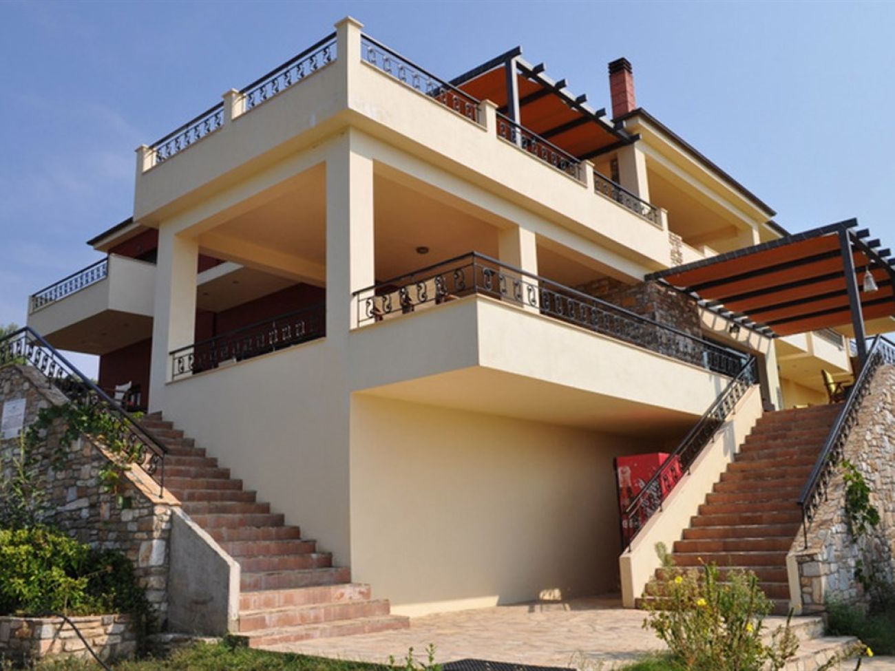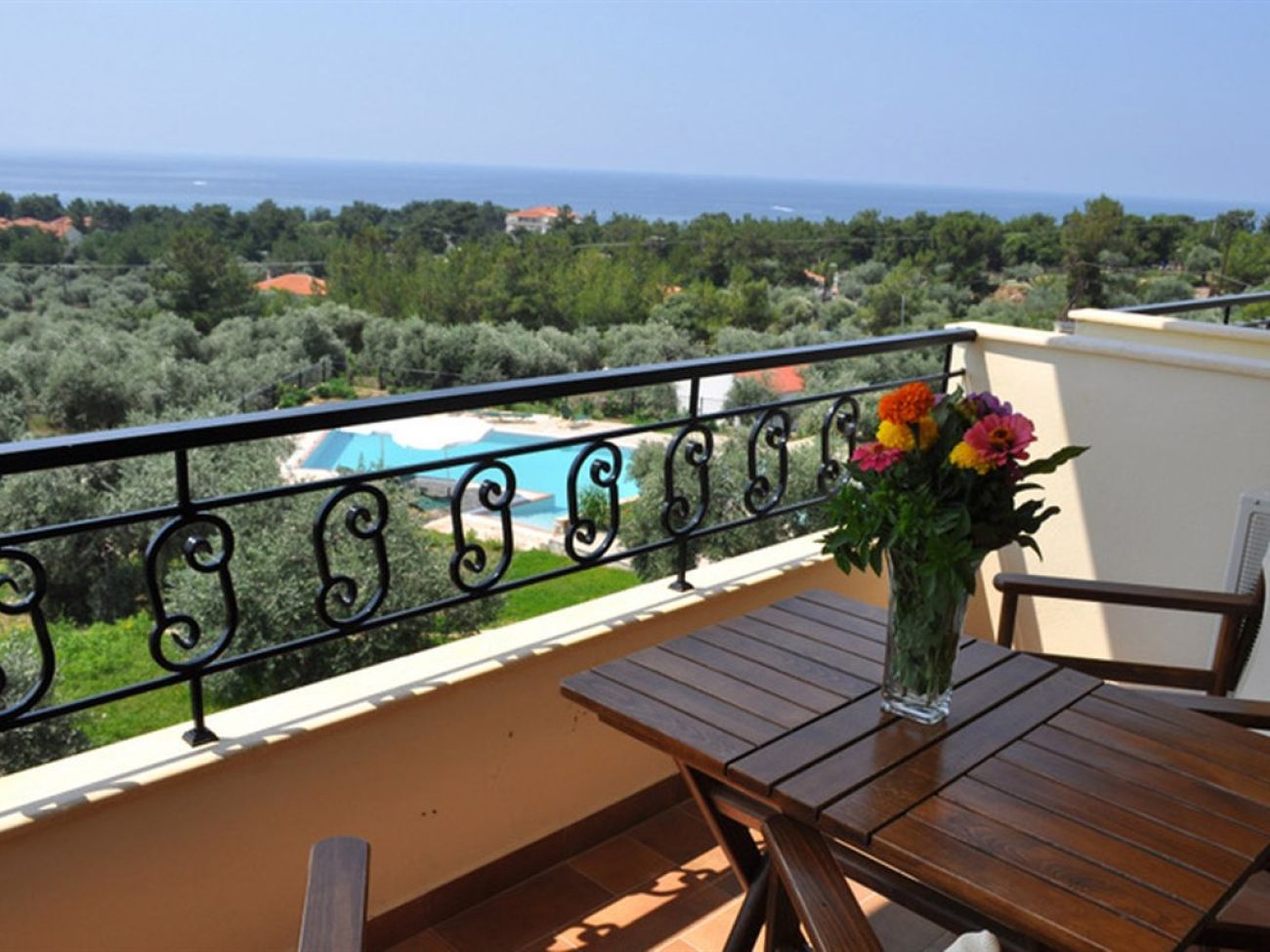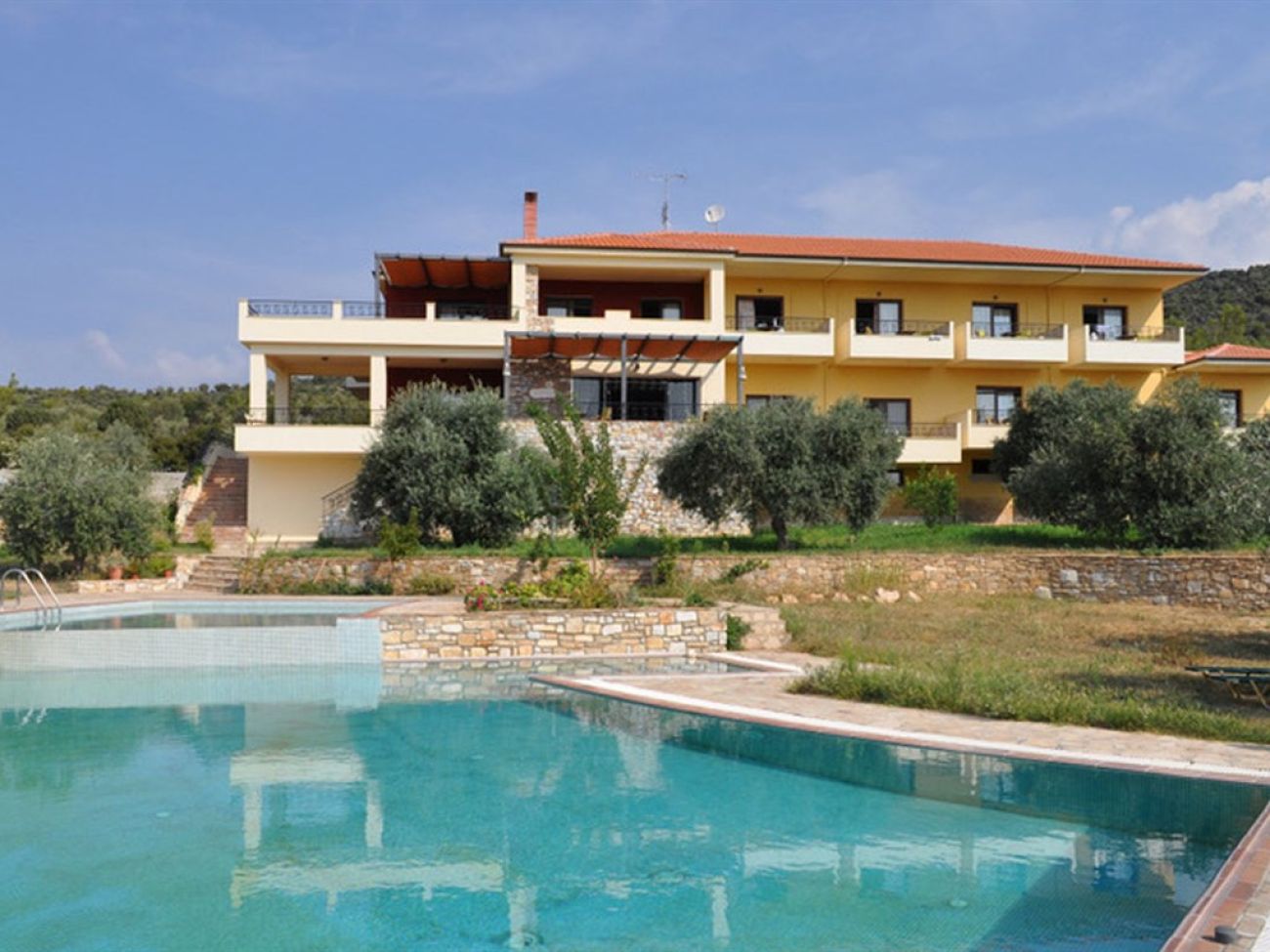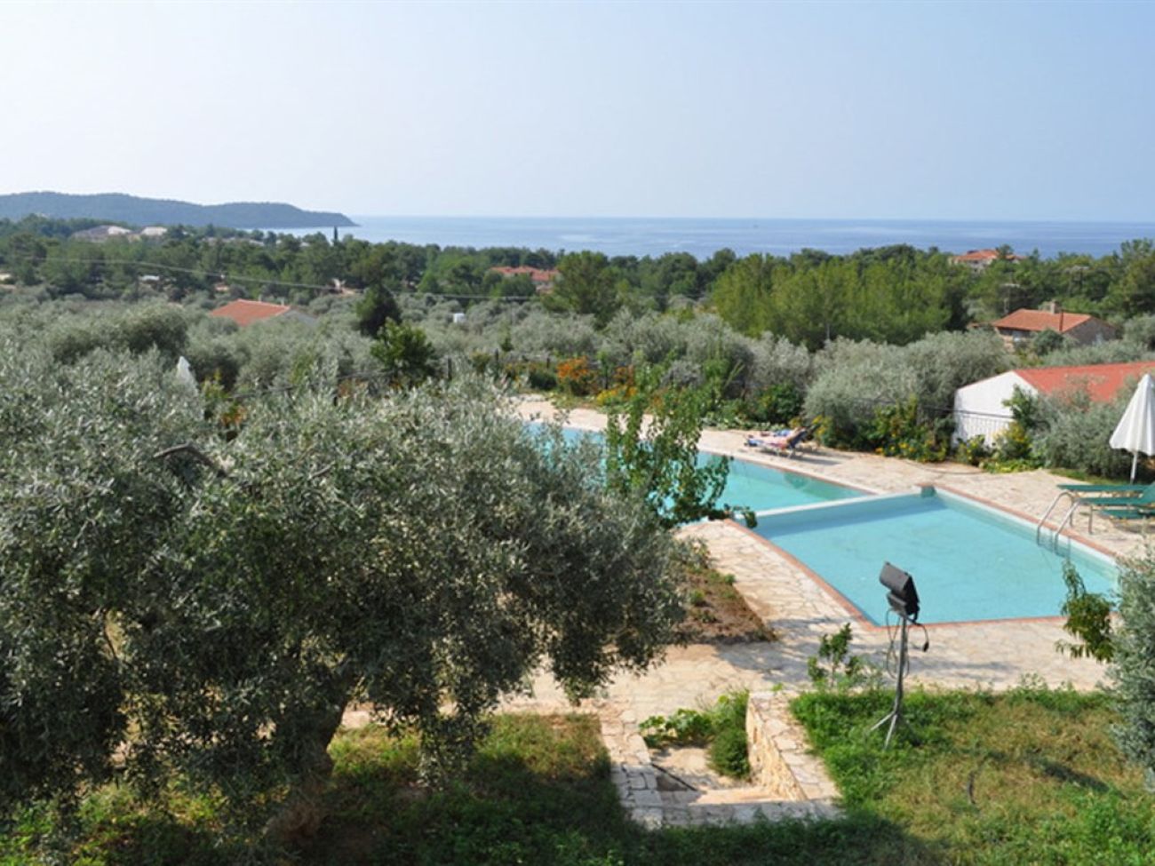 Малък хотел на зелен хълм, с невероятна гледка към морето, сред  борови и маслинови дървета.