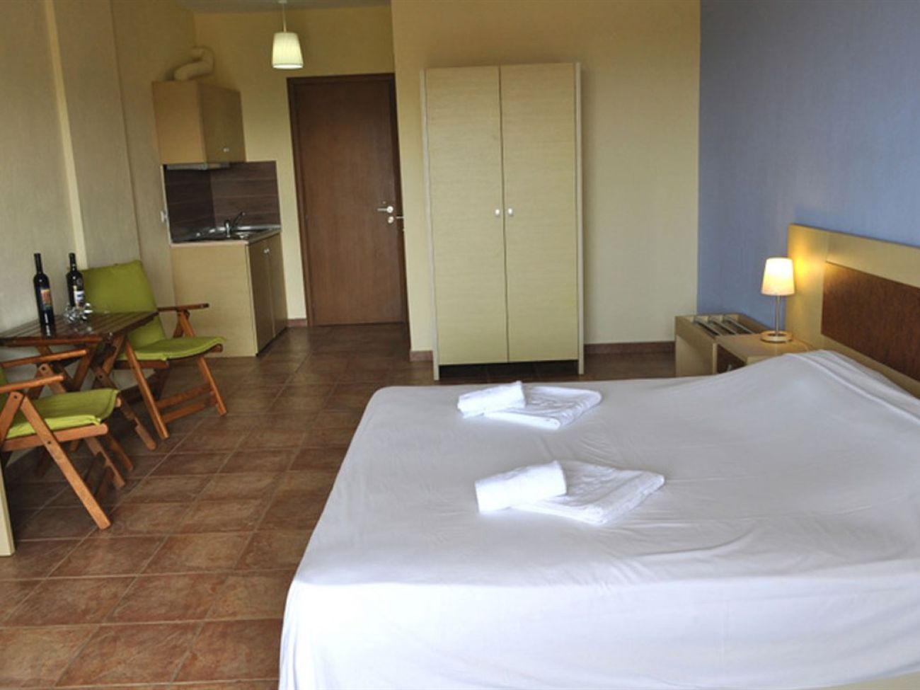 В стаите са на разположение: оборудвана кухня (електрически печка с два котлона,съдове, кафе-машина),минихладилник, климатик, сателитна телевизия, душ, сешоар, безплатен Wi-Fi интернет, сейф по заявка (безплатно), балкон / тераса.