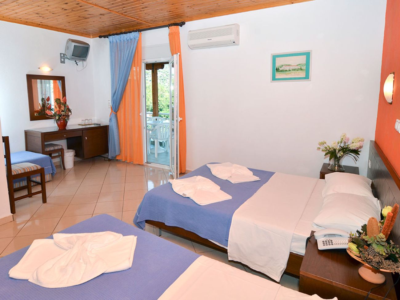Хотелът се намира в район Астрис (южната част на острова), на 35 километра от центъра и пристанището на град лименас Лименас, столицата на острова.