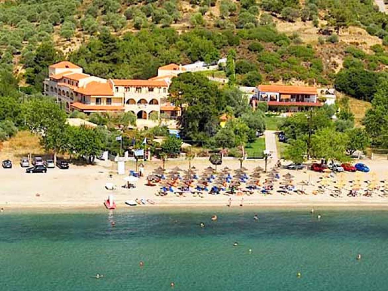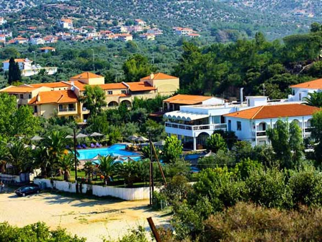 Малък хотел, разположен  сред зеленина и на известния пясъчен плаж Сан Антонио. Просторни и комфортни студия и апартаменти. Намира се близо до супермаркет, магазини, барове, ресторанти и таверни. Идеален избор за икономична и спокойна семейна почивка.