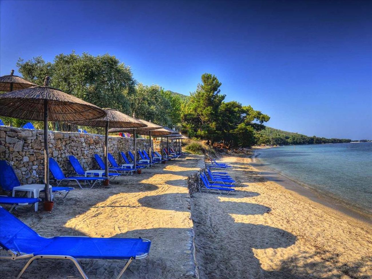 Пясъчно-чакълест плаж на 500 метра от хотела, чадъри и шезлонги (безплатно).