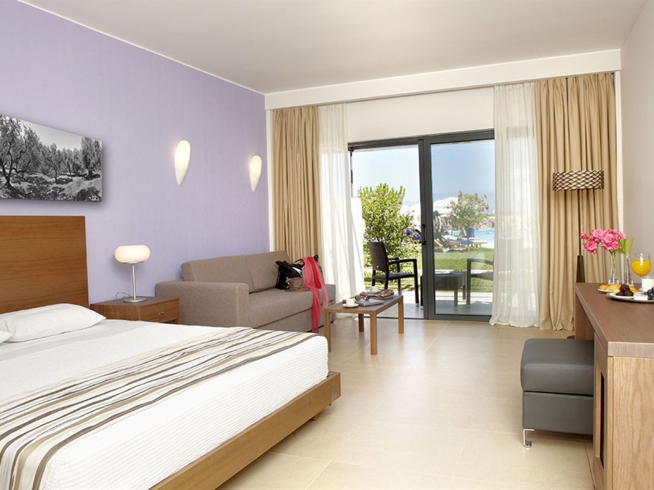 Луксозен петзвезден хотел с пясъчен плаж, разположен в живописен район с маслинови гори. Обширна поддържана територия, избро от комфортни стаи и суити, ресторант, барове, 3 открити басейна, водни пързалки, СПА център, обслужване от най-висока класа. Идеален избор за комфортна семейна почивка.