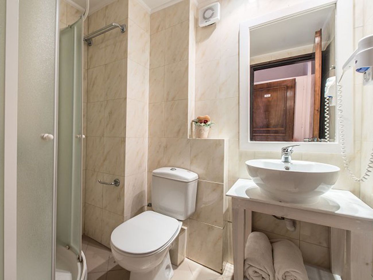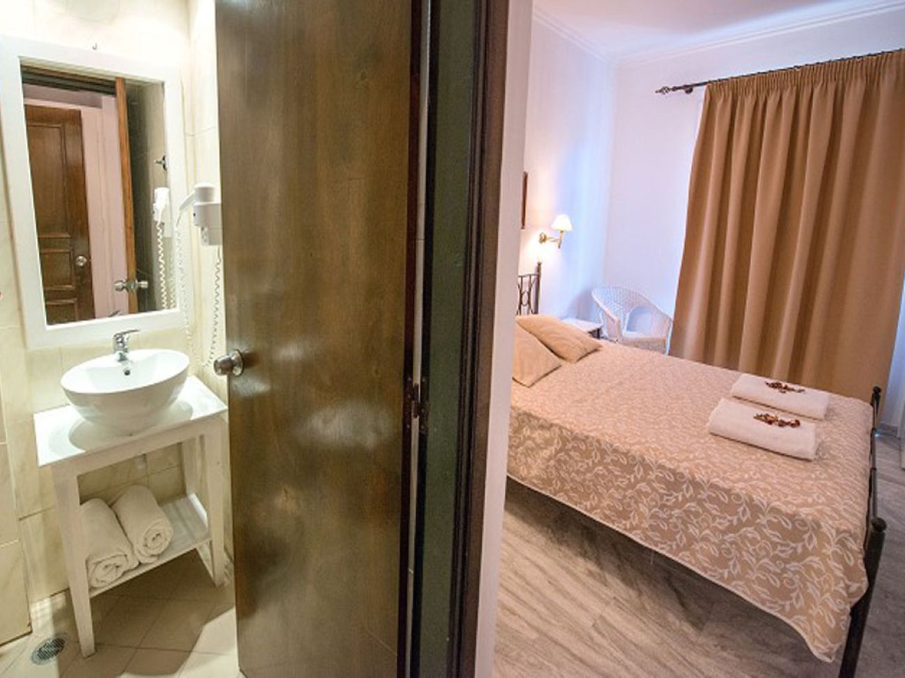 В стаите са на разположение климатик (срещу заплащане), телевизор, телефон с пряка връзка, интернет, минихладилник, сейф (срещу заплащане), баня с вана/душ, сешоар и ютия (при запитване), балкон/тераса, двойно или две единични легла.Тип допълнително легло - разтегателно. Студия Има оборудван кухненски бокс (електрическа печка с 2 котлона, посуда), 2 единични легла. Ежедневно почистване на стаите, смяна на спално бельо – 2 пъти седмично.