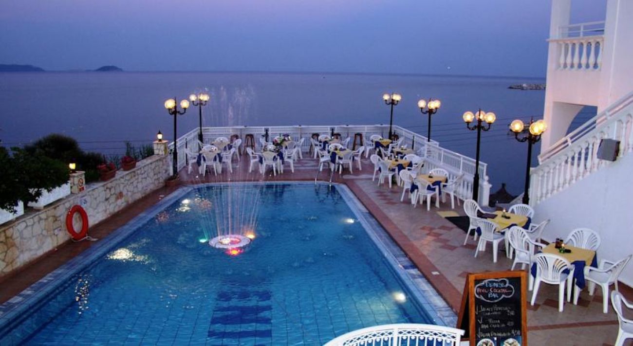 Икономичен хотел с директен вход към морето. Семпъл стил, стаи с кухненски бокс, басейн, интернет, ресторант и таверна до морето, 2 бара, отлично обслужване.