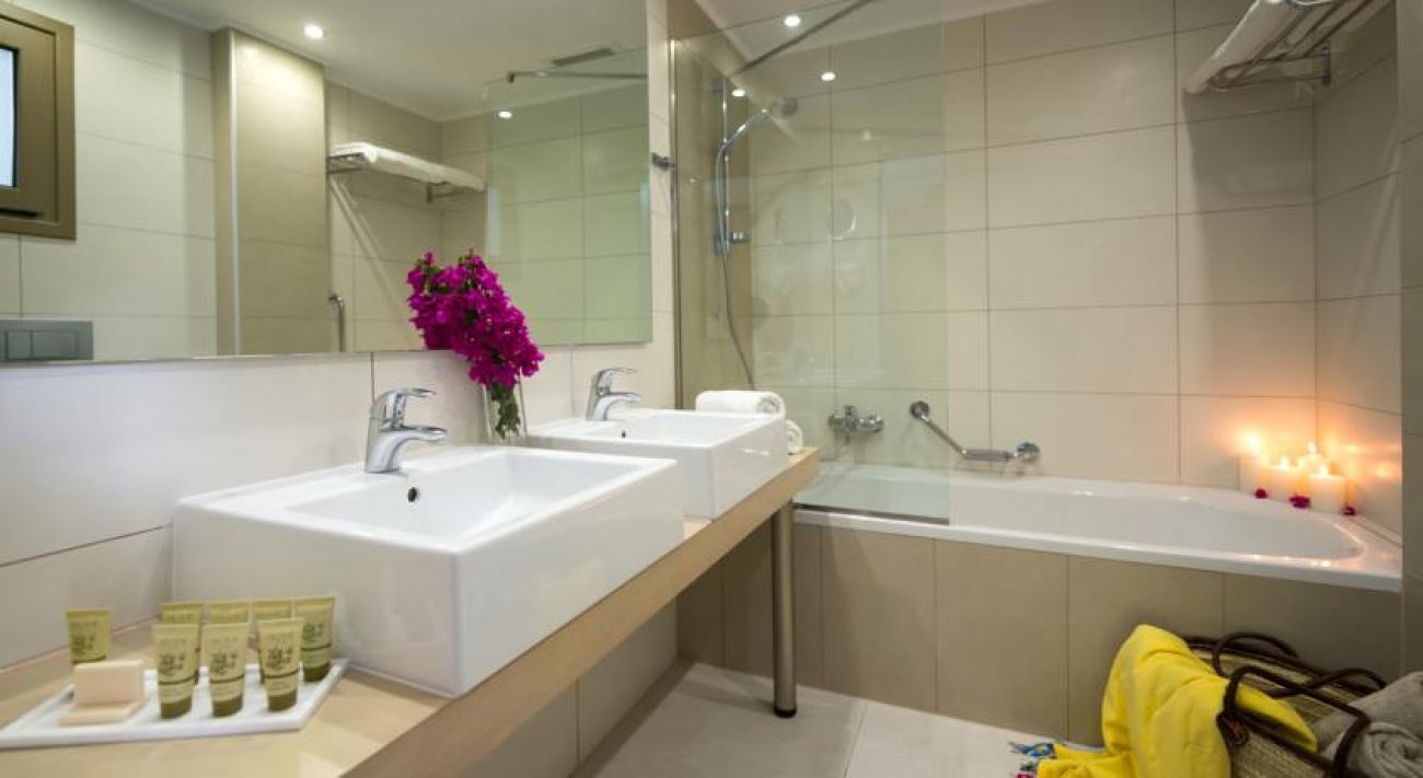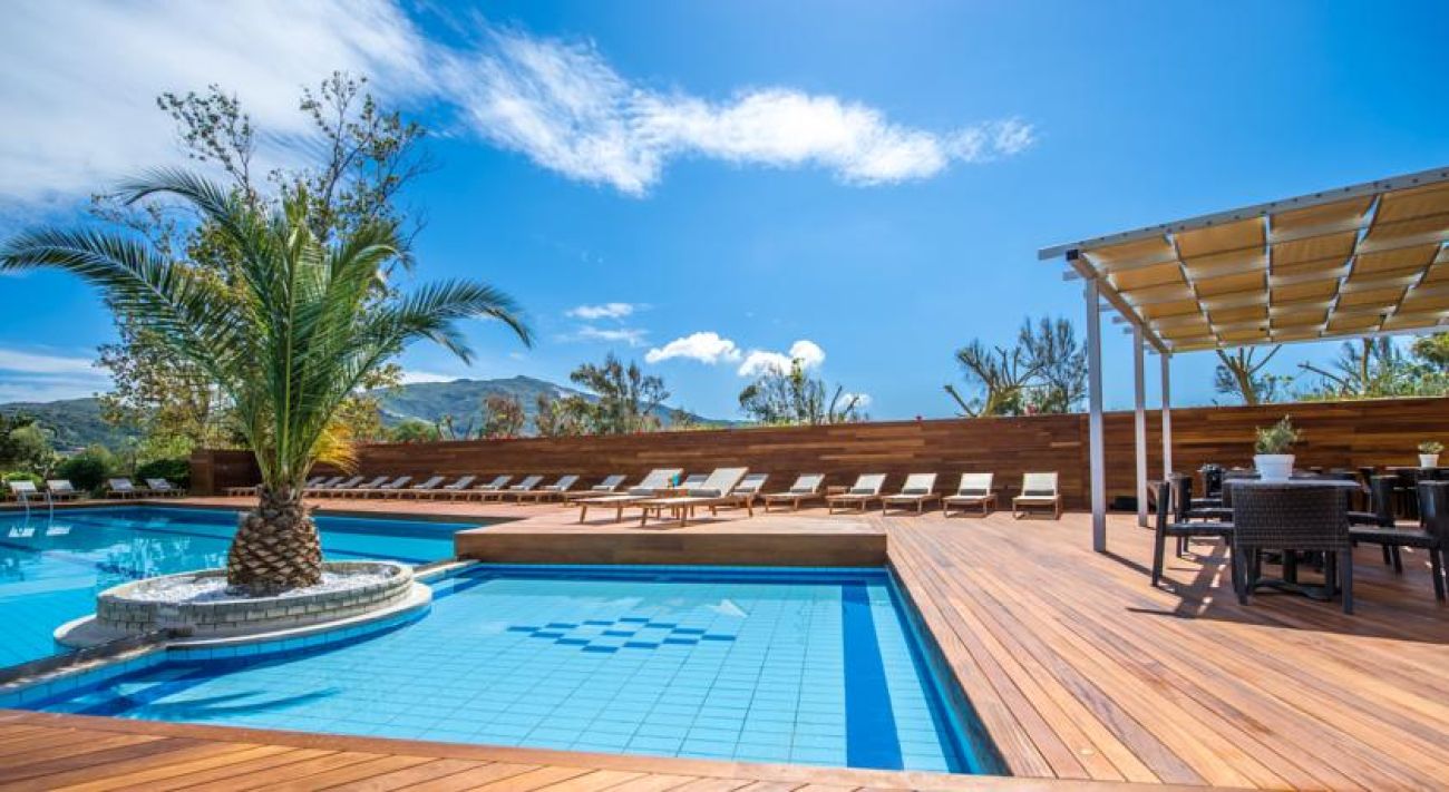 Красива зелена територия, палми, басейни, комфортни стаи, ресторант, бар, интернет достъп, качествено обслужване. Хотелът се намира на 400 м от екологично чистото крайбрежие, част от защитената територия на Гръцкия Морски Парк, където може да се наблюдават морските костенурки Карета-Карета.