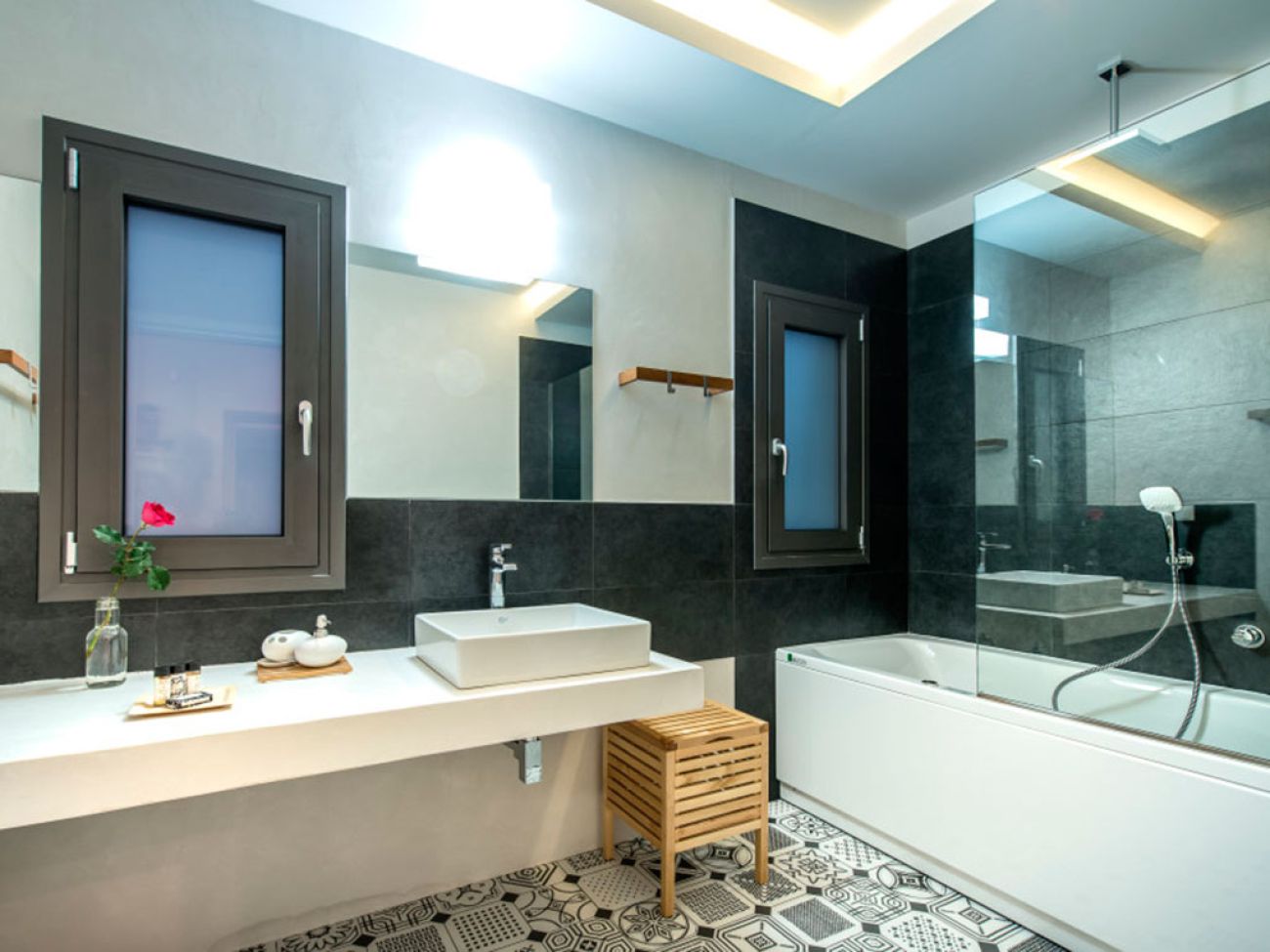 4 спални. Стаите са оборудвани с климатик, телевизор, хладилник, кухня, балкон и самостоятелна баня.