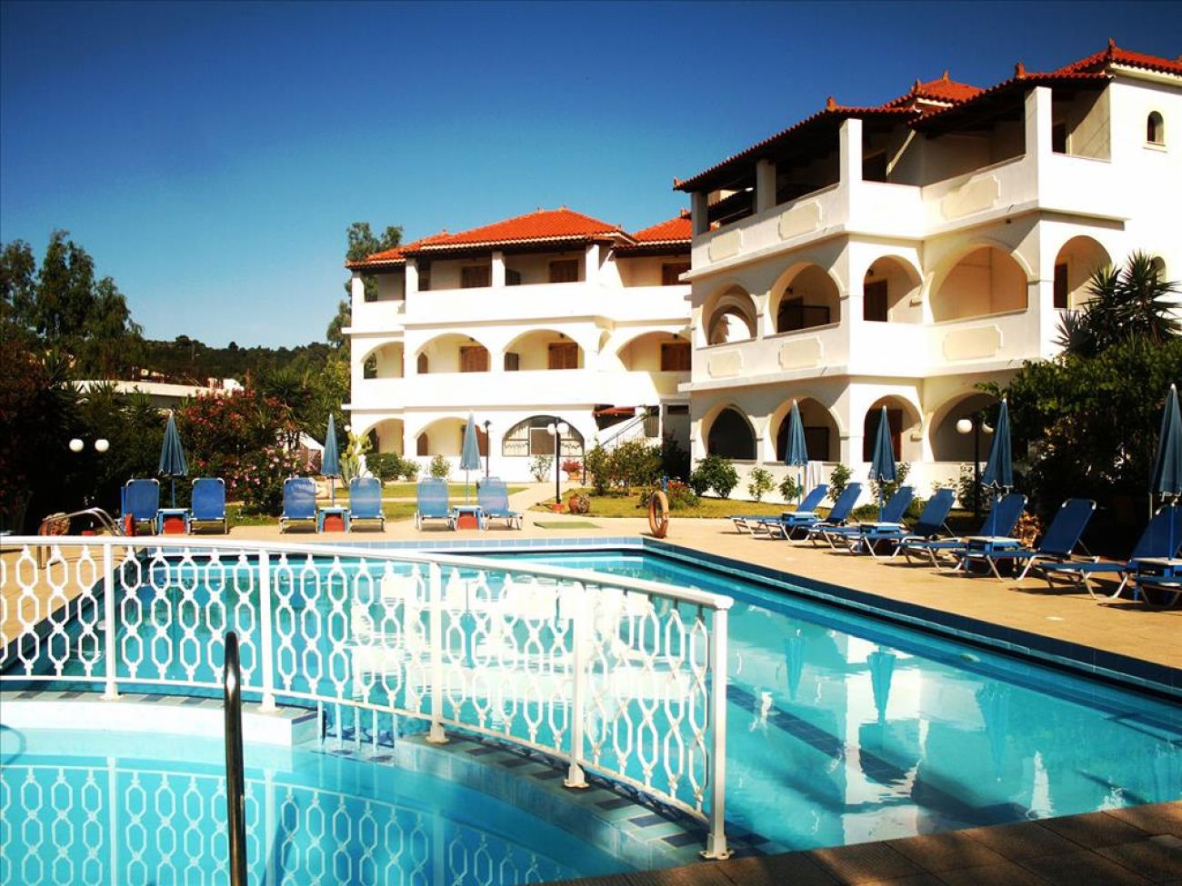 Малък хотел, който се състои от две триетажни сгради в класически стил, стаи с кухненски бокс, плувен басейн за възрастни и деца, 2 бара, детски кът, уютна атмосфера. Подходящ за комфортна и икономична почивка.