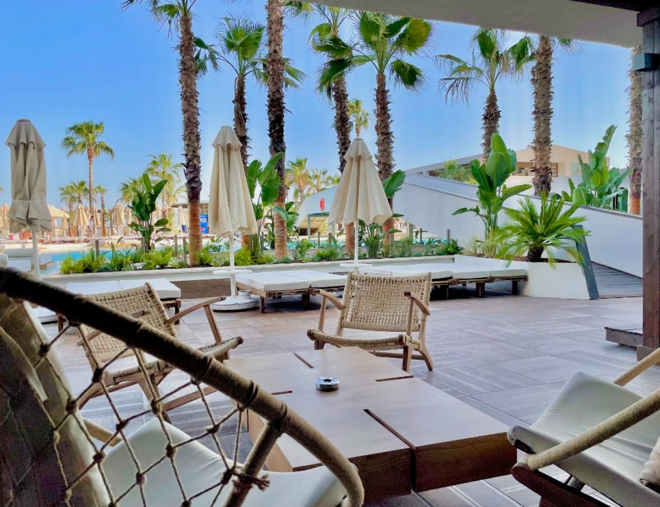 Собствен, пясъчен с дължина 100 м и платформа, на която е разположен Mocha Beach Club с кабани (срещу заплащане). Чадъри, шезлонги и плажни кърпи на плажа и при басейна -безплатно.