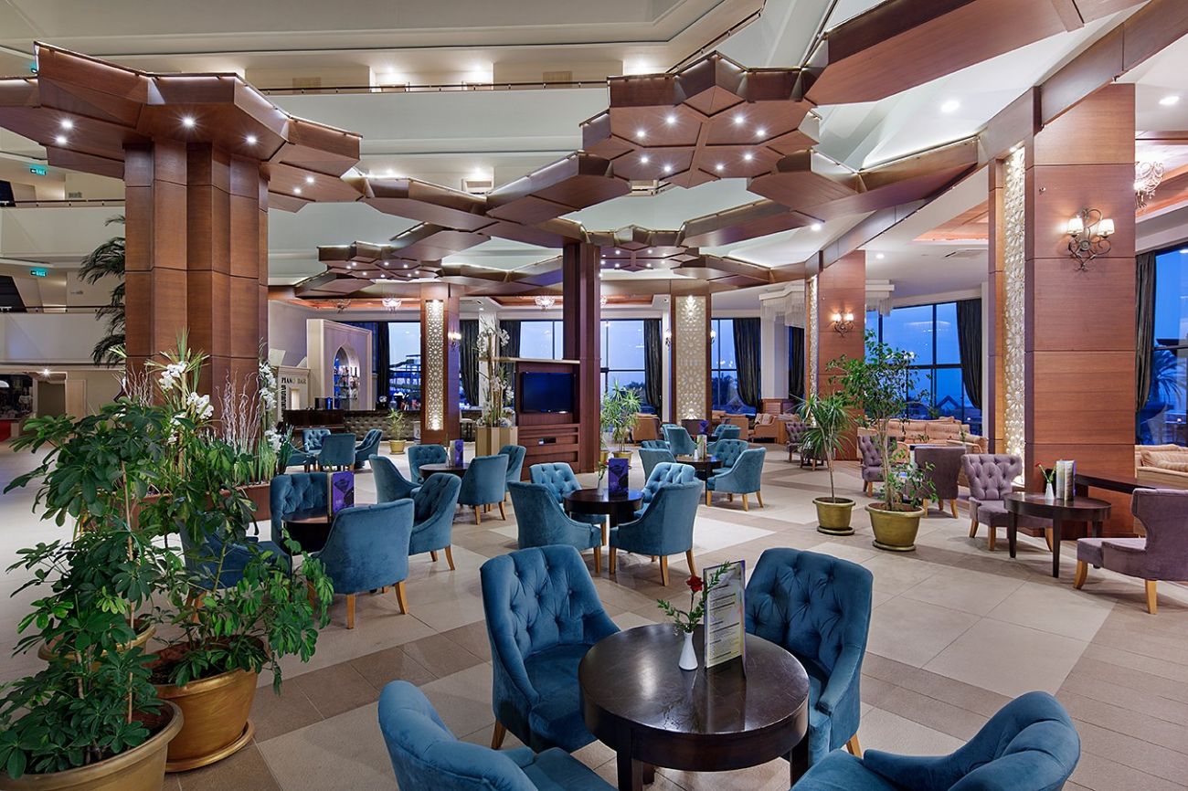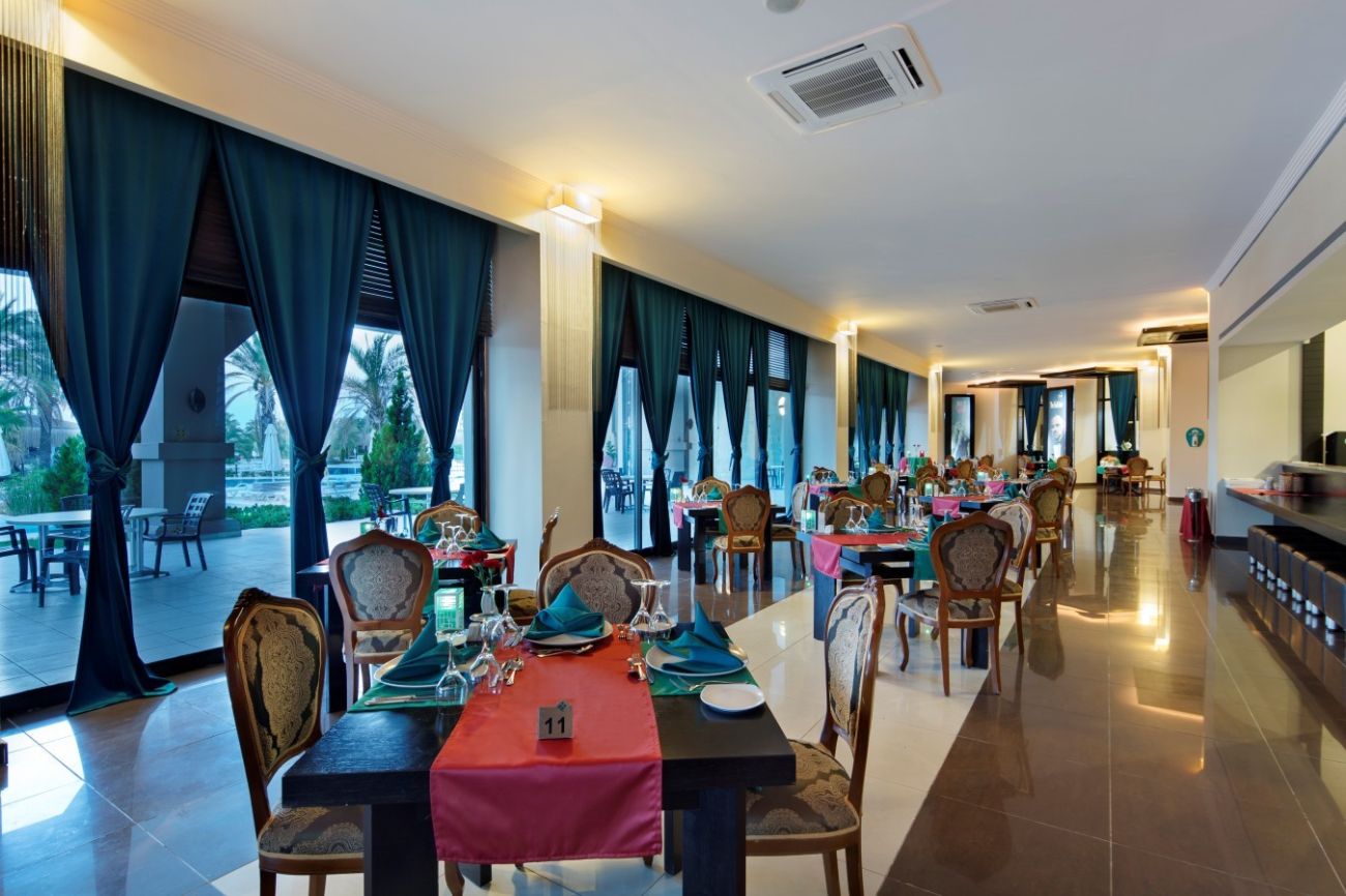 Хотелът предлага основен ресторант, диетично меню, 4 ресторанта a-la-carte (рибен, италиански, азиатски, турски с предварителна резервация, по време на престоя посещението на 1 ресторант веднъж е безплатно), 5 бара, 5 открити басейна, закрит басейн, 2 водни пързалки, лекарски кабинет, SPA-център, фризьор, магазини.