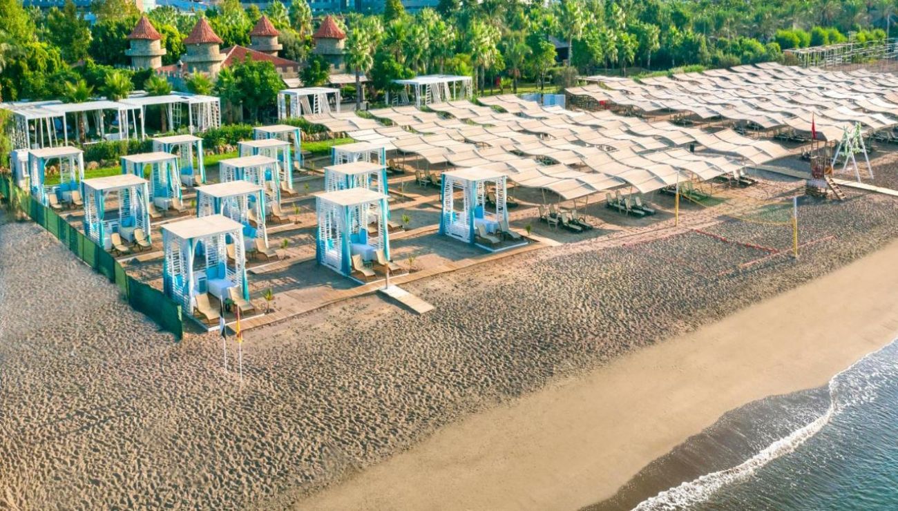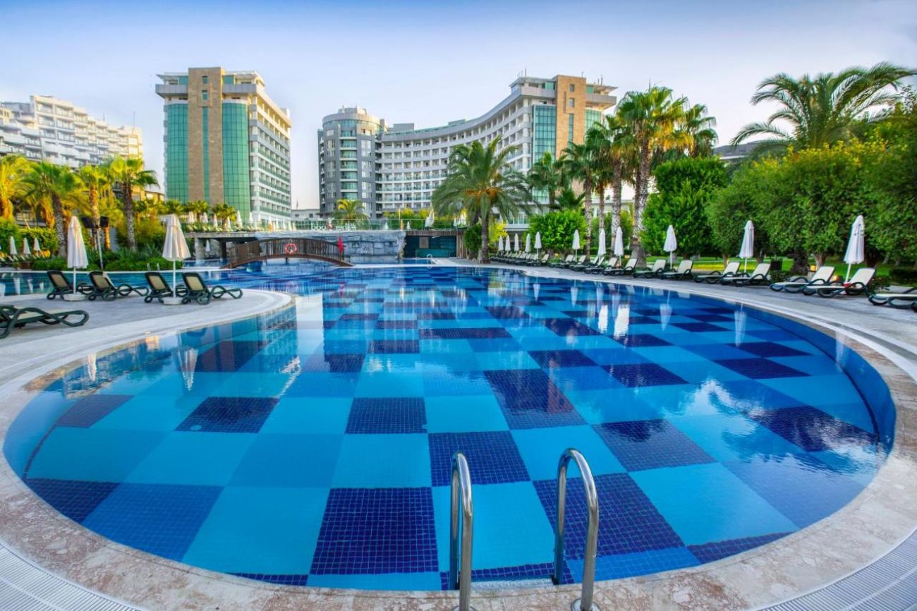 Хотелът се намира на брега на морето, в района на Лара, на 12 км. от центъра и 10 км. от летището на Анталия. Построен е през 2005г. и е последно реновиран 2019-2020г. с обща площ от 33 000 кв.м.