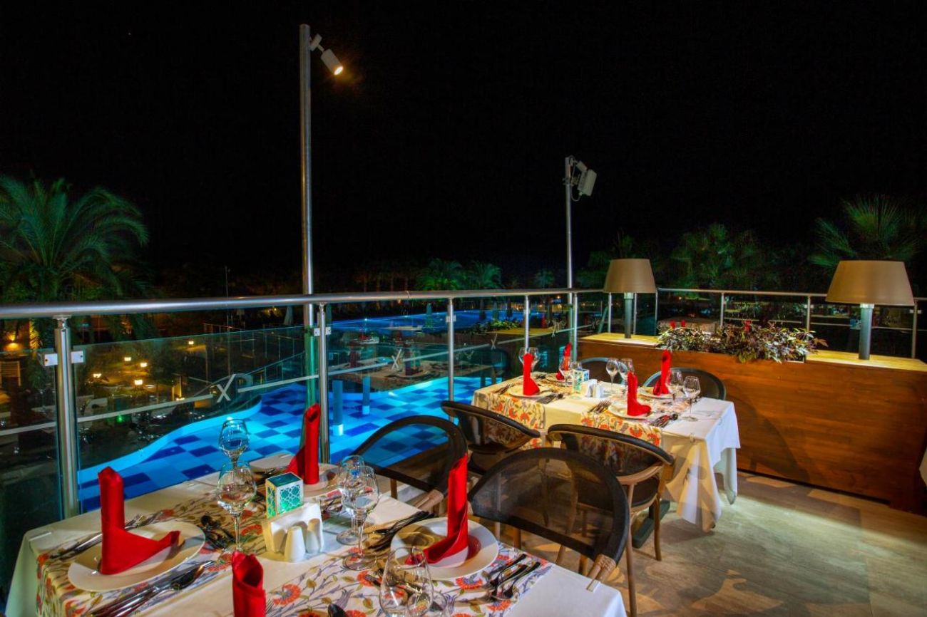 Основен ресторант, 9 бара - един от които е платен, диско бар, 4 а-ла-карта ресторанта (азиатски, италиански, рибен, турски - платени с предварителна резервация), 6 басейна, детски басейн, водни пързалки, вътрешен басейн, конферентна зала, боулинг, игрална зала, магазини, фитнес център, СПА център, амфитеатър, анимация, мини клуб (4-12г.), тийн клуб (12-16г.), WI-FI.