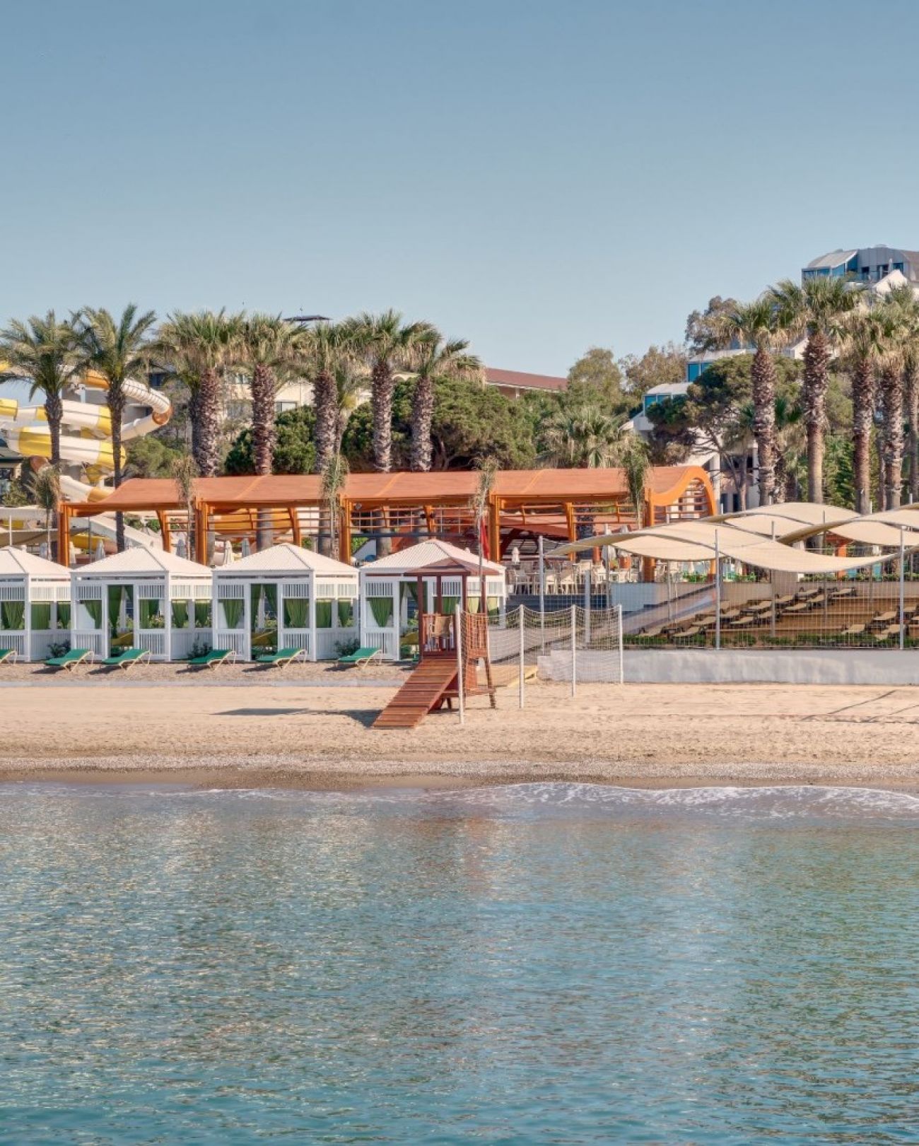 Плаж: Собствен, пясъчен, пред хотела. Има кей, бар на плажа: безплатно, с осигурени плажни кърпи, чадъри, шезлонги.