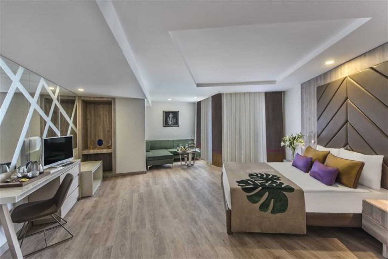 Разположение: Хотелът се намира на 14 км от летището, на 10 км от центъра на Анталия и на първа линия море, на 1 км от село Лара.