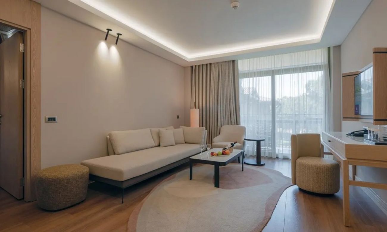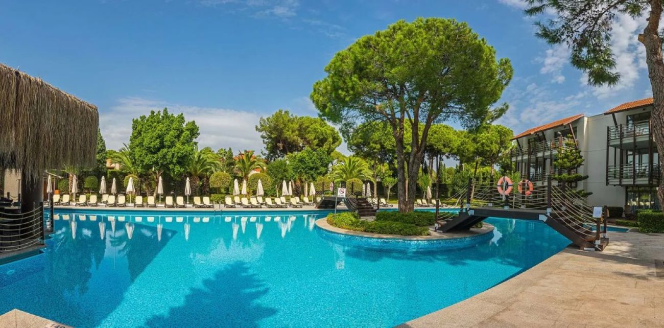Разположение: Хотелът се намира на 40 км от междунардно летище Анталия, на 50 км от центъра на Анталия, на 7 км от Белек, на брега на морето. Построен е през 1997 г. върху територия с обща площ от 190.000 m².